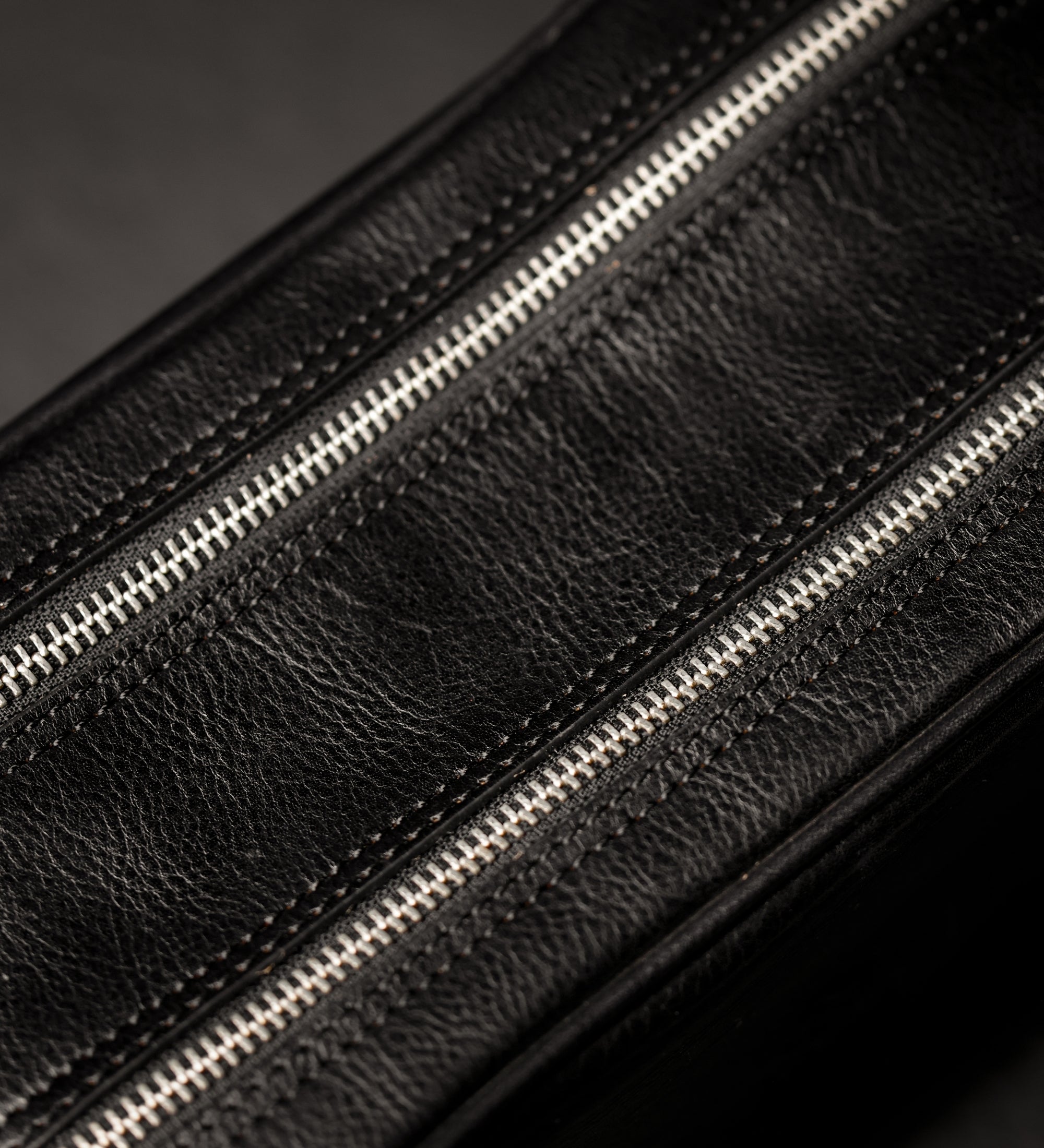 Another perfectly crafted cosmetic/toiletry bag for men (and not only). Two separate compartments are roomy enough to fit everything you need. Two inside pockets to keep things apart from others. Simple and classic design comfortably planned to fit every man's needs.
