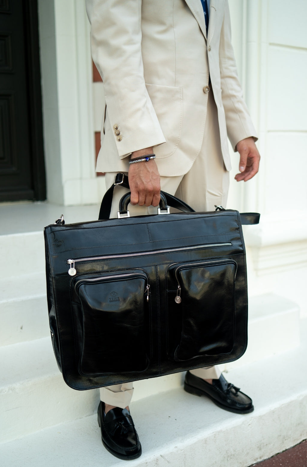 Get noticed with a stylish gentleman’s travel companion, that is spacious enough for at least 2 suits. Now you can travel with a wrinkle-free suit and not have to carry it separately. Perfect from beginning to end this full-grain leather garment bag will make you stand out on every business trip.
