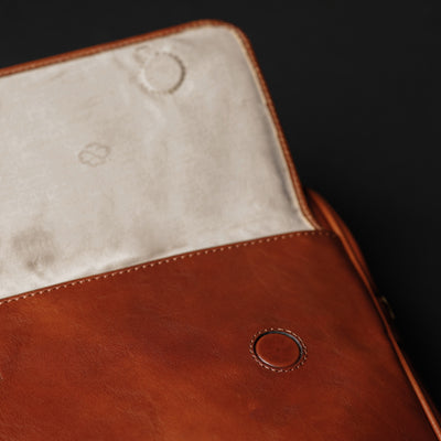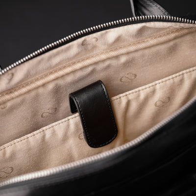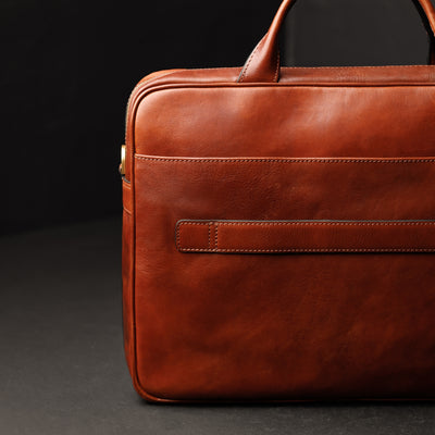 The Sheltering Sky - this leather briefcase is a great companion on the way to work or study. Its solid appearance is just perfect for both men and women's needs. Made from full-grain Italian leather, it comes with a trolley strap and a detachable shoulder strap, making it perfect for travel. The spacious compartments easily fit legal-sized paper, A4 documents, and folders, and it also has room for a 15-inch laptop. If that is not enough - we made an additional pocket with a flap on the front with an extra-strong magnetic closure ideal for keeping your essentials easily accessible.