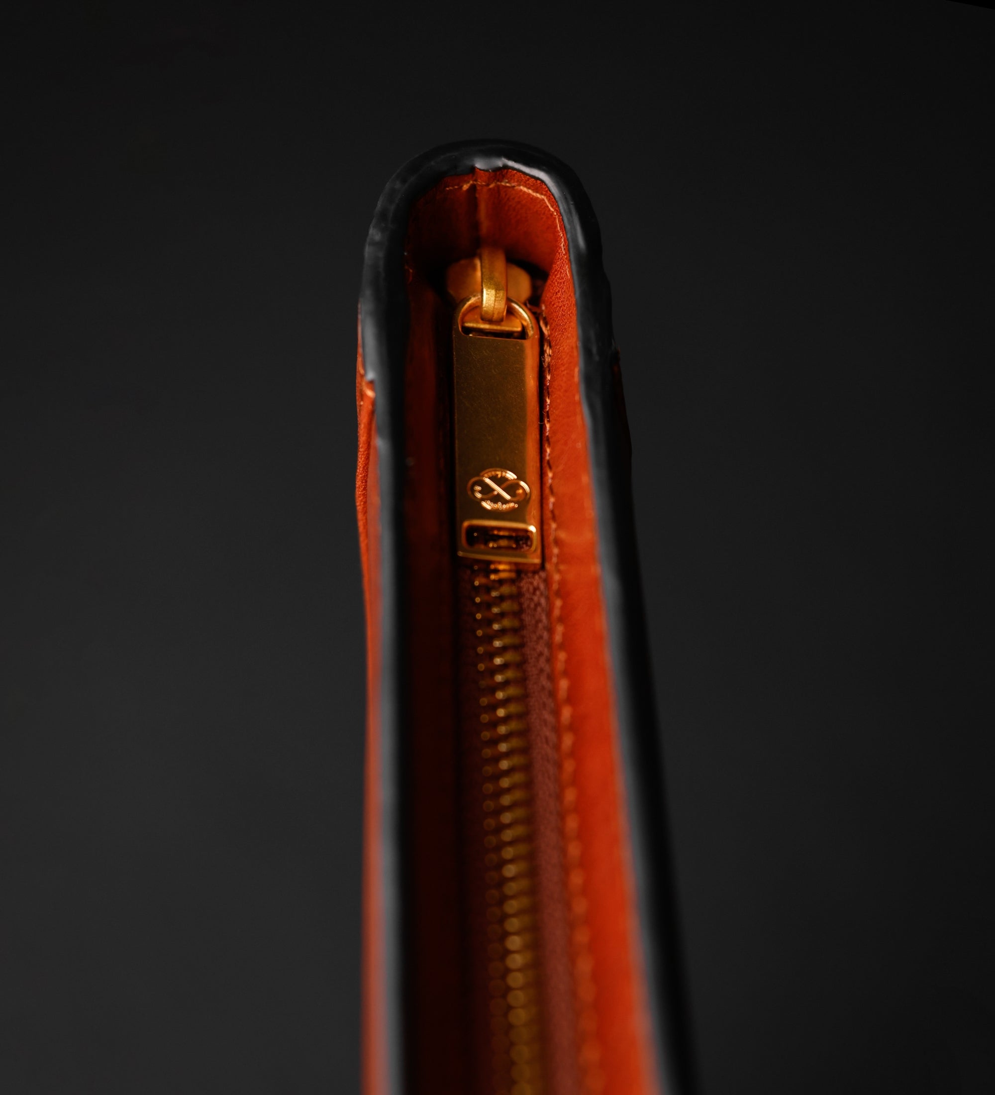 A solid full-grain leather documents folder that will complete a sleek minimalist business look. To organize your files and digital devices but keep a light, effortless chic appearance.