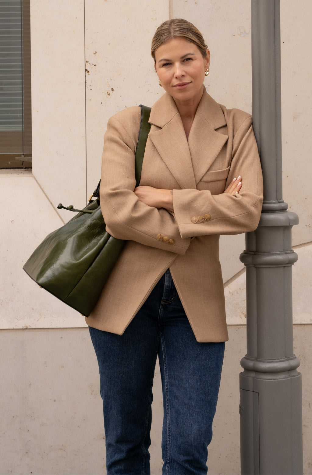 I'm very pleased with my new Bucket Bag. Delivery to Australia was extremely fast (about 5 days!). It is a beautiful, rich brown colour, and it is well made and sturdy. The leather will soften up and develop character, which I am excited for. It will be an item that I will cherish for a long time. Highly recommended!