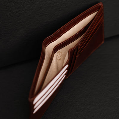 Function and artistry converge in The Getaway, a bifold wallet of full-grain cowhide built to age with character. Ten card slots and two cotton-lined cash compartments provide thoughtful organization, while the overall design whispers of effortless sophistication. Presented in a luxury gift box, it is a statement of quiet refinement for those who appreciate the beauty of simplicity.