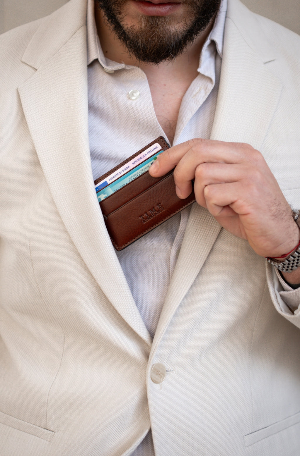 The Firefly Full Grain Leather Card Case is a perfect balance of elegance, functionality, and timeless design. Crafted for those who appreciate classic style, it features four sleek card slots - two on each side - for effortless organization, along with a middle slot for extra storage. Slim yet practical, it’s a refined everyday essential that ages beautifully with time.