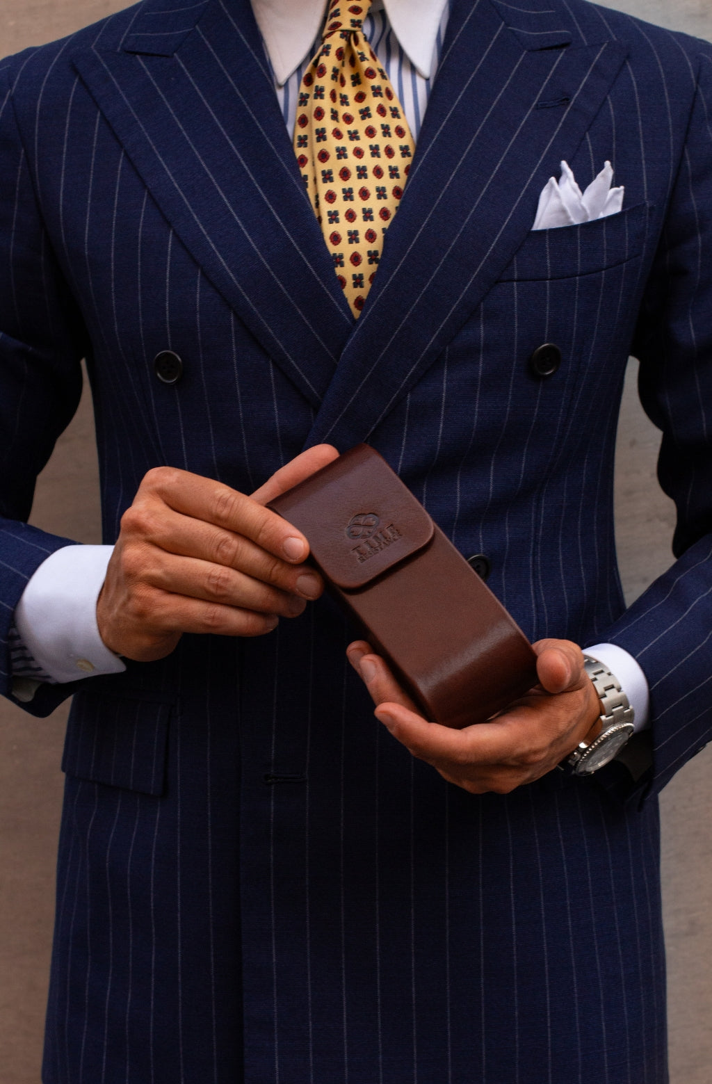 Crafted with precision from the finest Italian leather, each case is a testament to our commitment to quality and tradition. Designed with a minimalistic aesthetic and a magnetic closure for effortless access, this case exudes sophistication and practicality in equal measure. Hand-dyed using vegetable tanning techniques, the leather boasts a rich, natural patina that only improves with age. Our logo is discreetly embossed on the front flap, a subtle nod to the discerning craftsmanship within. Elevate your eyewear experience with this luxurious accessory, where style meets substance in perfect harmony.