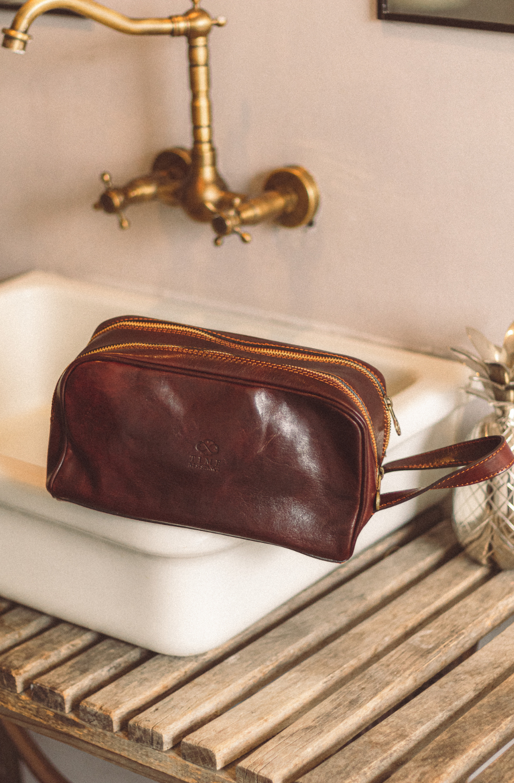 Time Resistance bags and accessories are crafted from premium full-grain, hand-dyed, vegetable-tanned Italian cowhide, known as Vachetta leather, which develops a beautiful patina and ages gracefully over time.
