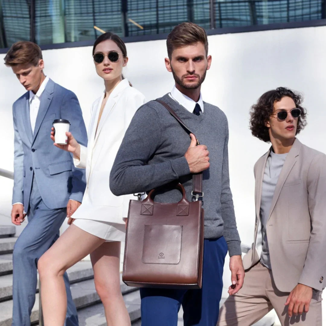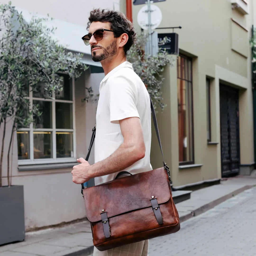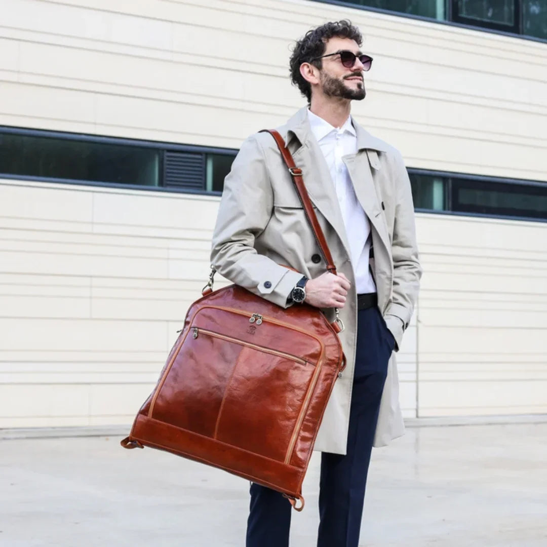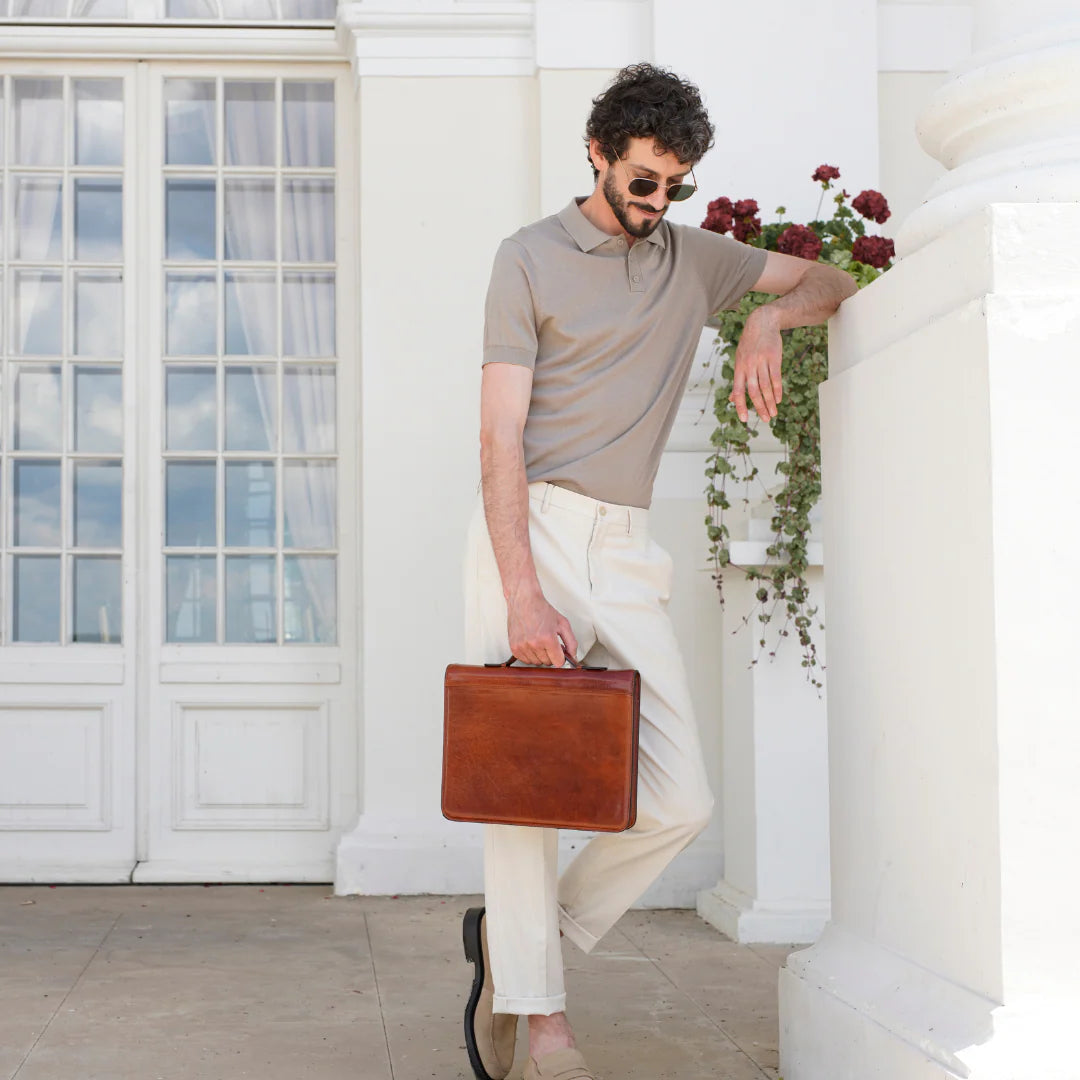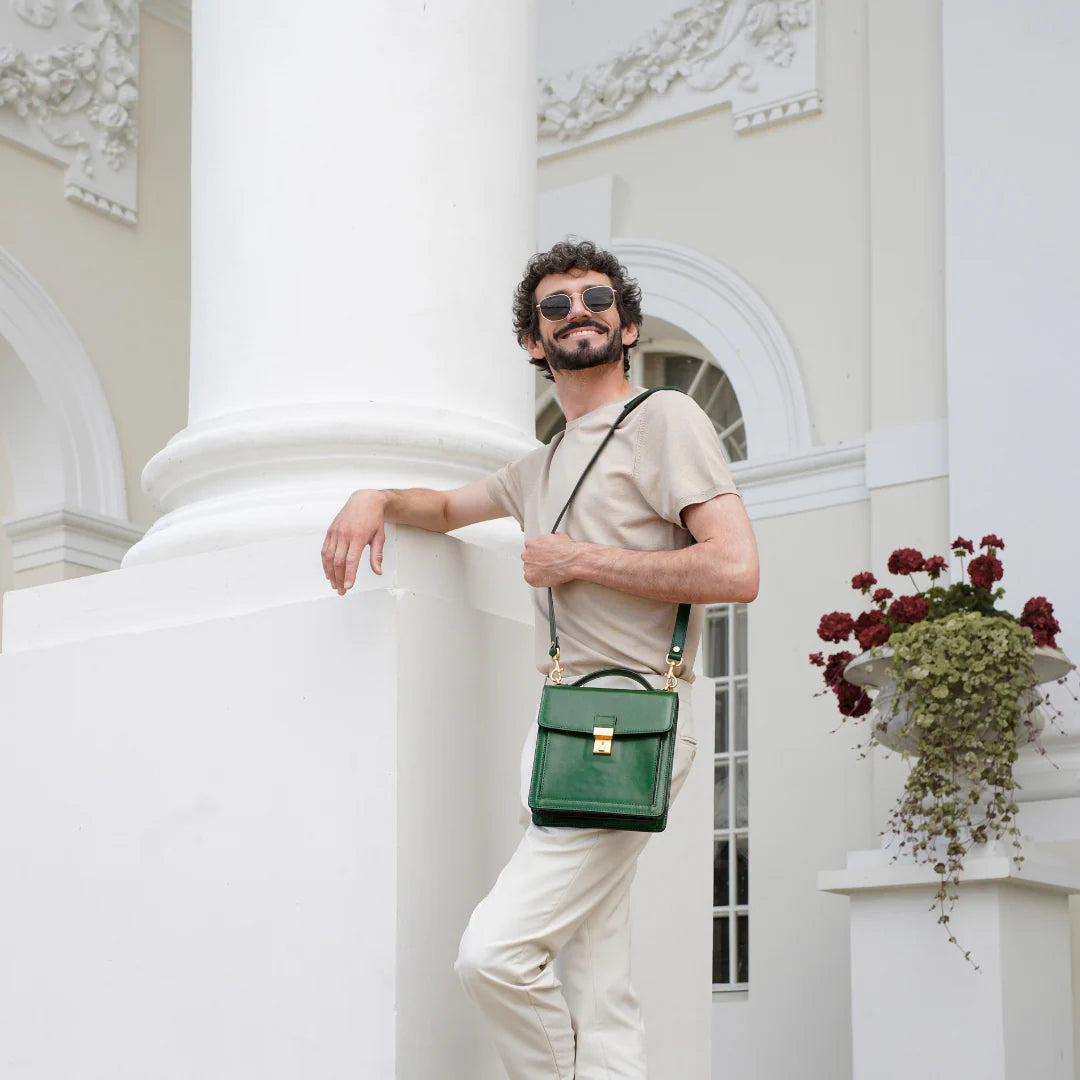 This spring, we invite you to experience a new kind of love: a love between you and your bag. Our latest photoshoot is a tribute to this special bond that transcends time and space. Our leather bags are more than just accessories. They are companions, confidants, and soulmates. They reflect your inner beauty and express your outer style. They are with you through thick and thin, through joy and sorrow, through work and play. They are the ones who make you feel alive and complete. Our photoshoot captures the magic of spring: the freshness of the air, the warmth of the sun, the vibrancy of the city. The model is a vision of elegance and charm, wearing a suit that matches his bags and his mood. The background is a stunning contrast of light and dark, with subtle touches of modernity and history. The photoshoot is a romance between you and your bag. It shows that you don’t need anyone else to make you happy. You just need yourself and your bag. So go ahead and indulge in a spring fling with our leather bags.