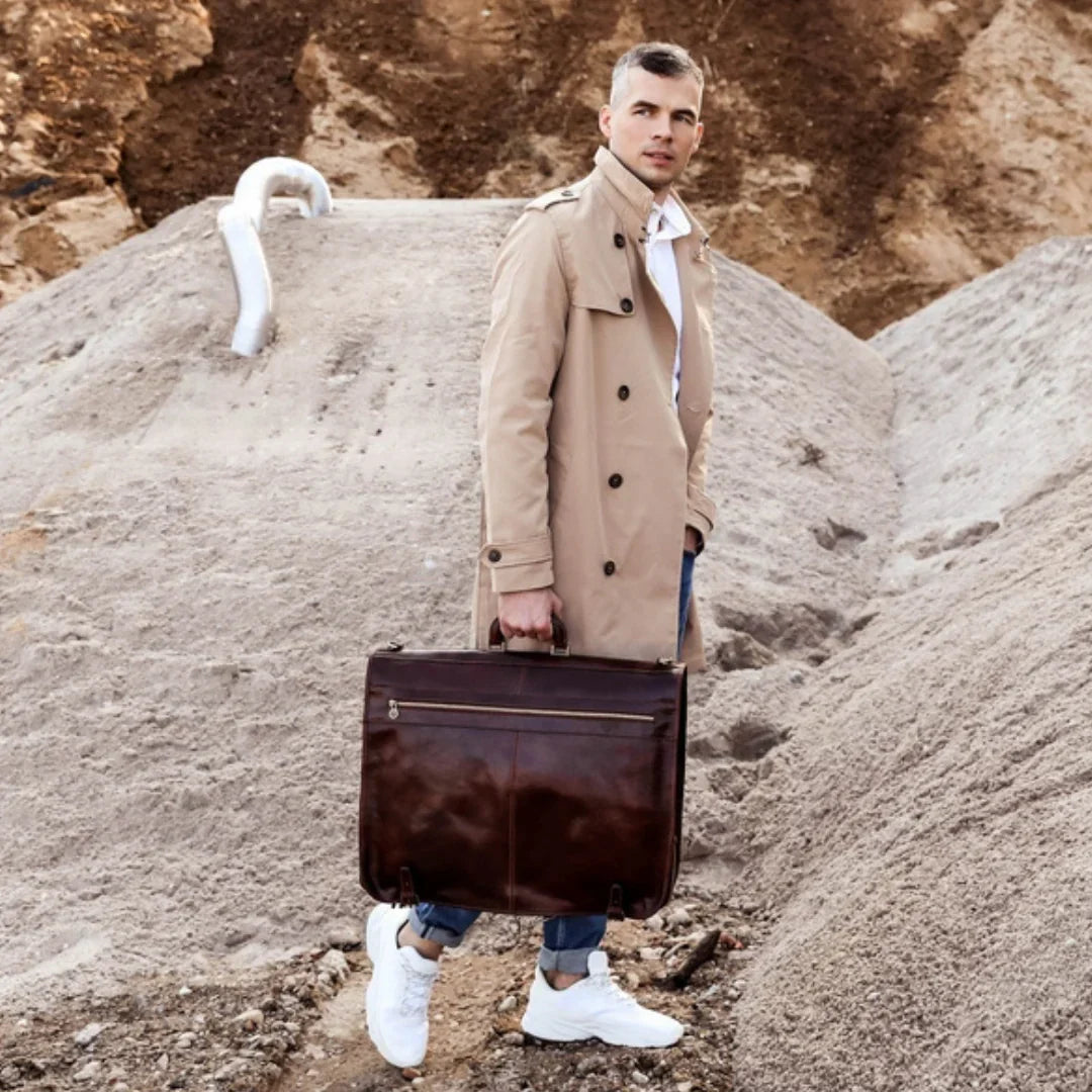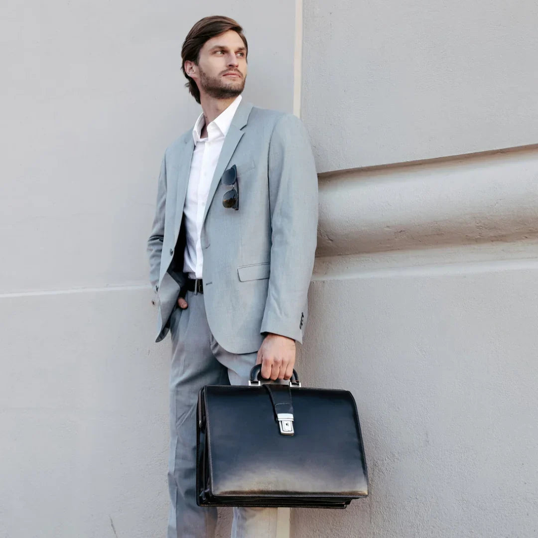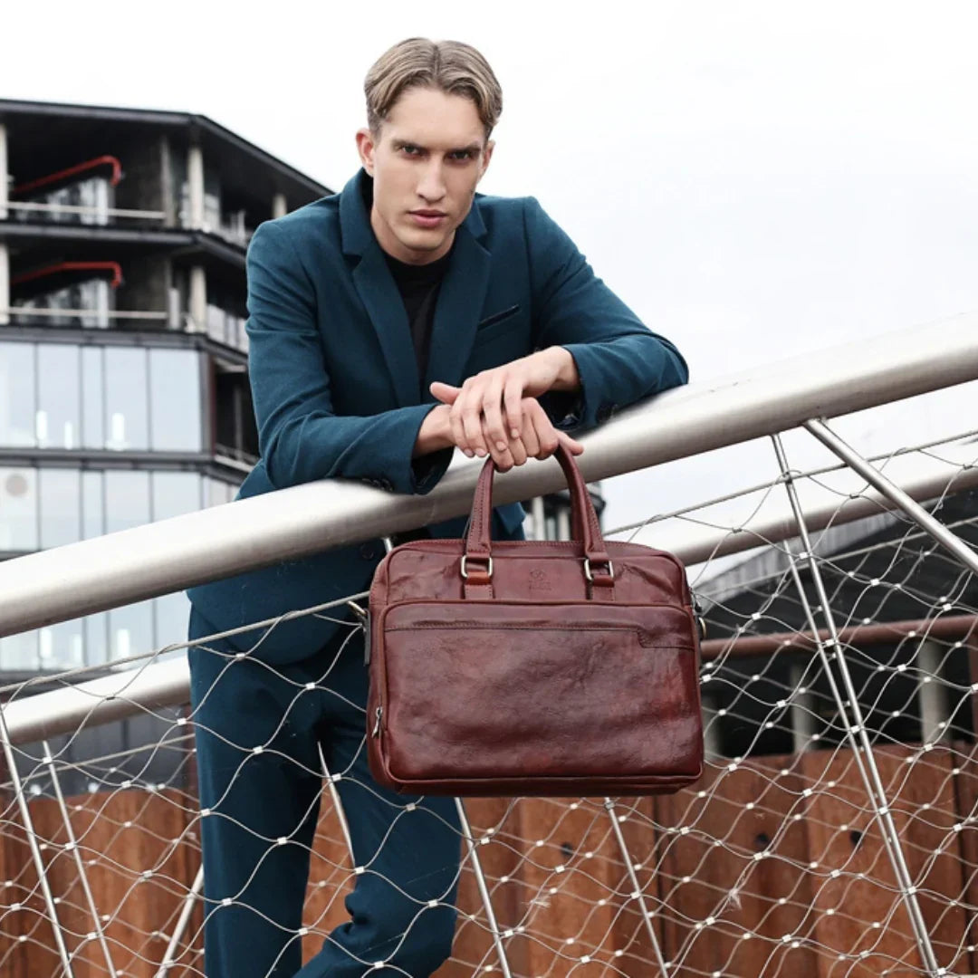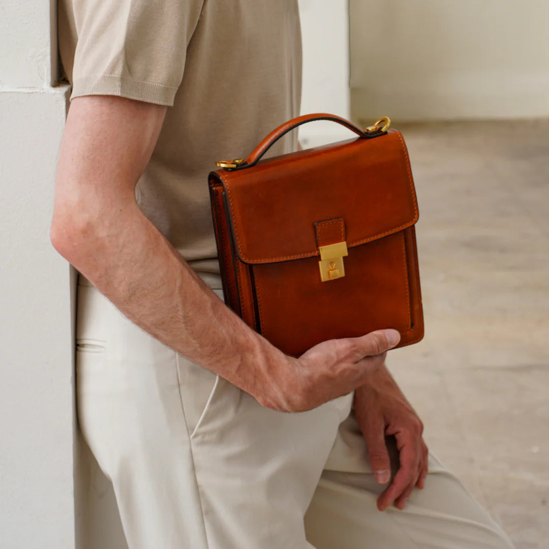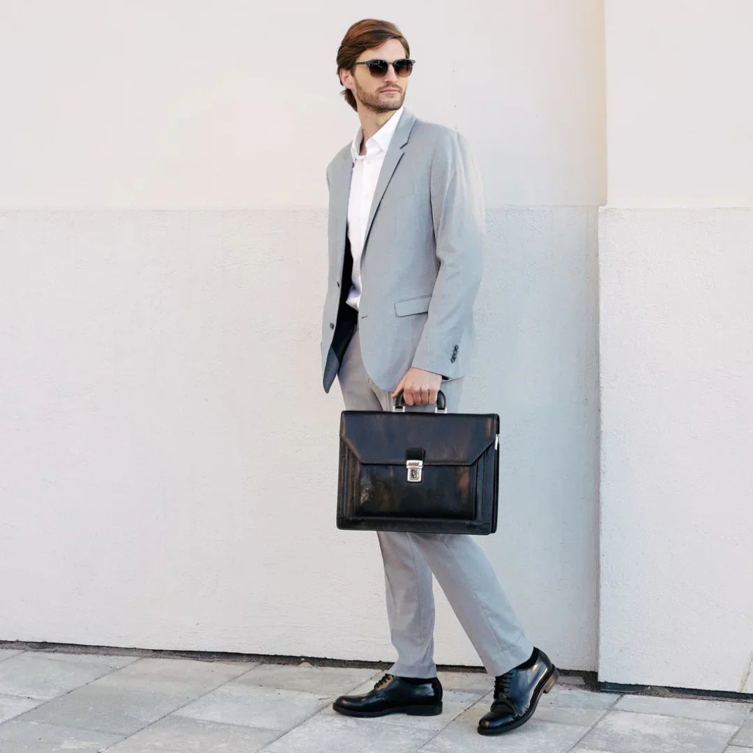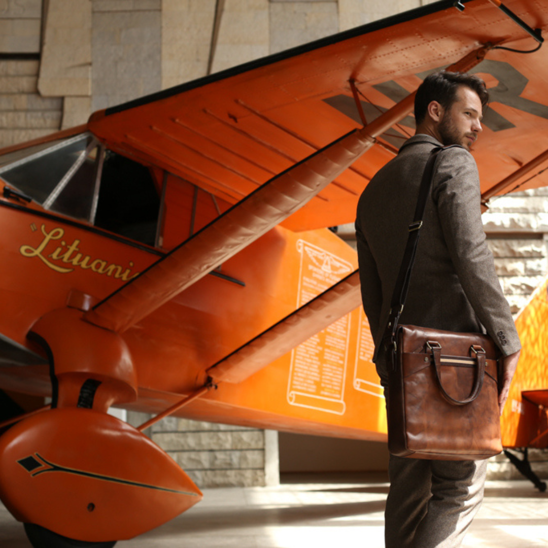 This spring, we invite you to experience a new kind of love: a love between you and your bag. Our latest photoshoot is a tribute to this special bond that transcends time and space. Our leather bags are more than just accessories. They are companions, confidants, and soulmates. They reflect your inner beauty and express your outer style. They are with you through thick and thin, through joy and sorrow, through work and play. They are the ones who make you feel alive and complete. Our photoshoot captures the magic of spring: the freshness of the air, the warmth of the sun, the vibrancy of the city. The model is a vision of elegance and charm, wearing a suit that matches his bags and his mood. The background is a stunning contrast of light and dark, with subtle touches of modernity and history. The photoshoot is a romance between you and your bag. It shows that you don’t need anyone else to make you happy. You just need yourself and your bag. So go ahead and indulge in a spring fling with our leather bags.
