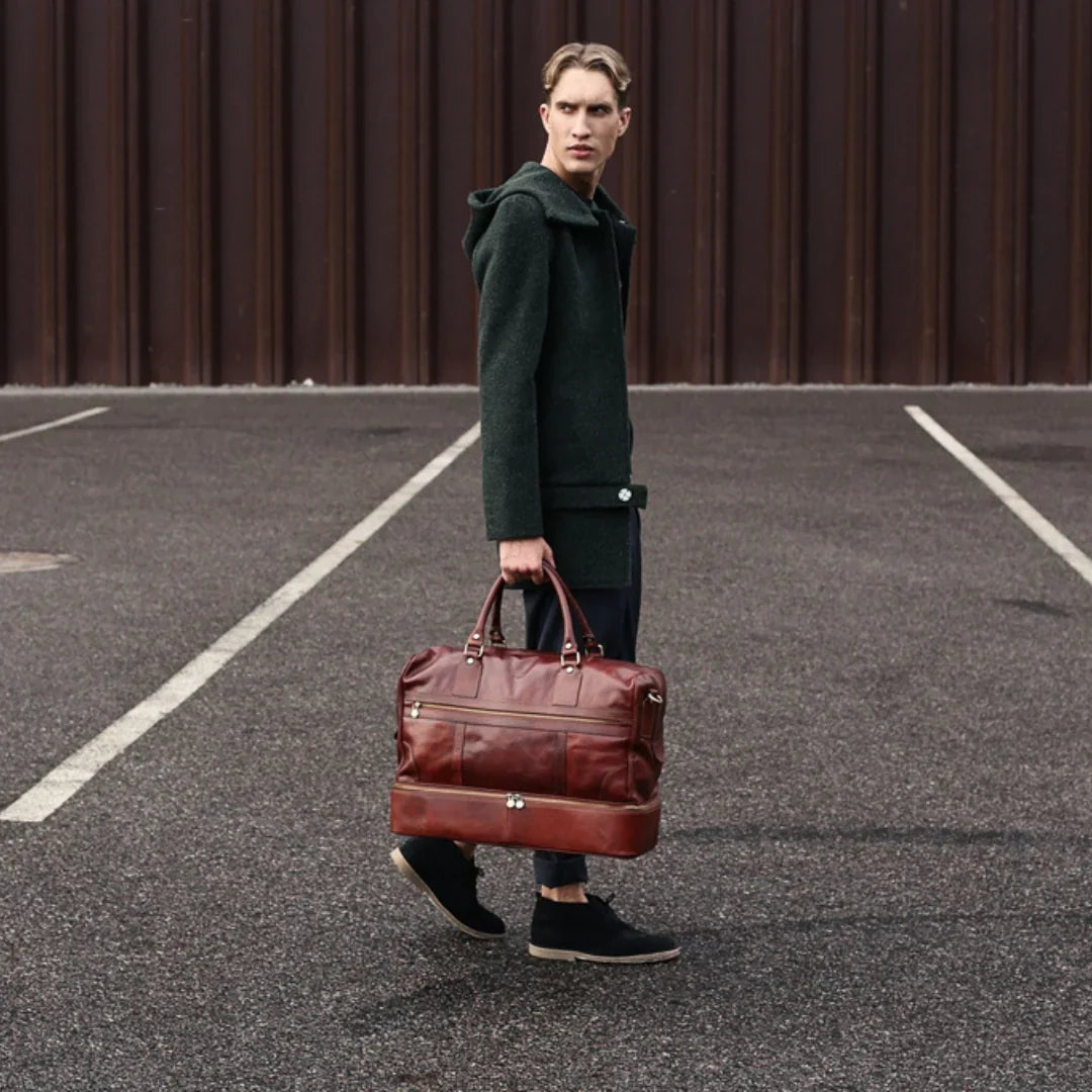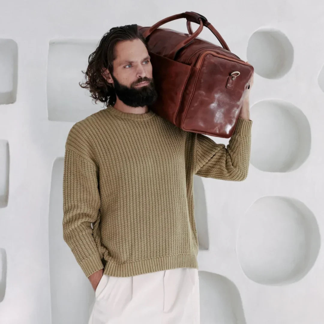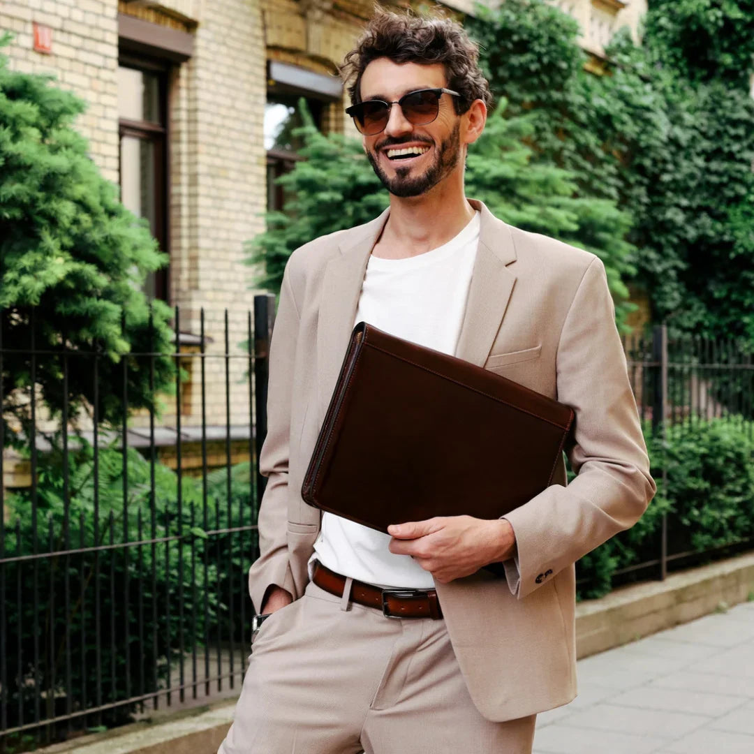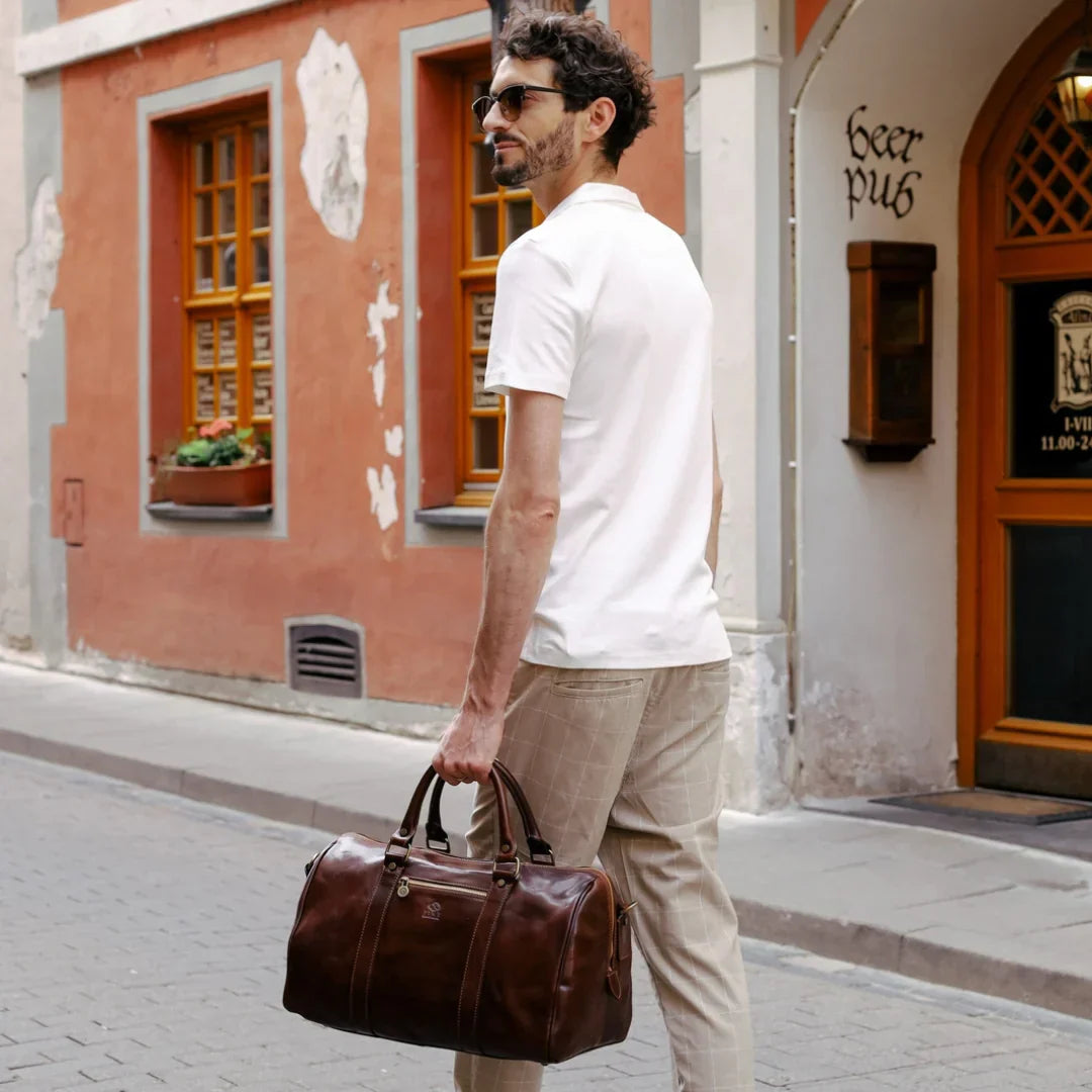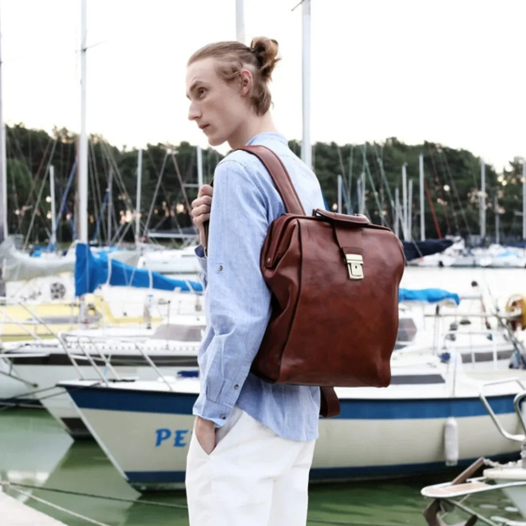 This spring, we invite you to experience a new kind of love: a love between you and your bag. Our latest photoshoot is a tribute to this special bond that transcends time and space. Our leather bags are more than just accessories. They are companions, confidants, and soulmates. They reflect your inner beauty and express your outer style. They are with you through thick and thin, through joy and sorrow, through work and play. They are the ones who make you feel alive and complete. Our photoshoot captures the magic of spring: the freshness of the air, the warmth of the sun, the vibrancy of the city. The model is a vision of elegance and charm, wearing a suit that matches his bags and his mood. The background is a stunning contrast of light and dark, with subtle touches of modernity and history. The photoshoot is a romance between you and your bag. It shows that you don’t need anyone else to make you happy. You just need yourself and your bag. So go ahead and indulge in a spring fling with our leather bags.