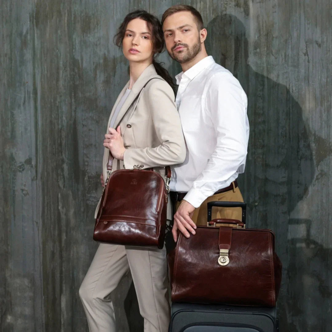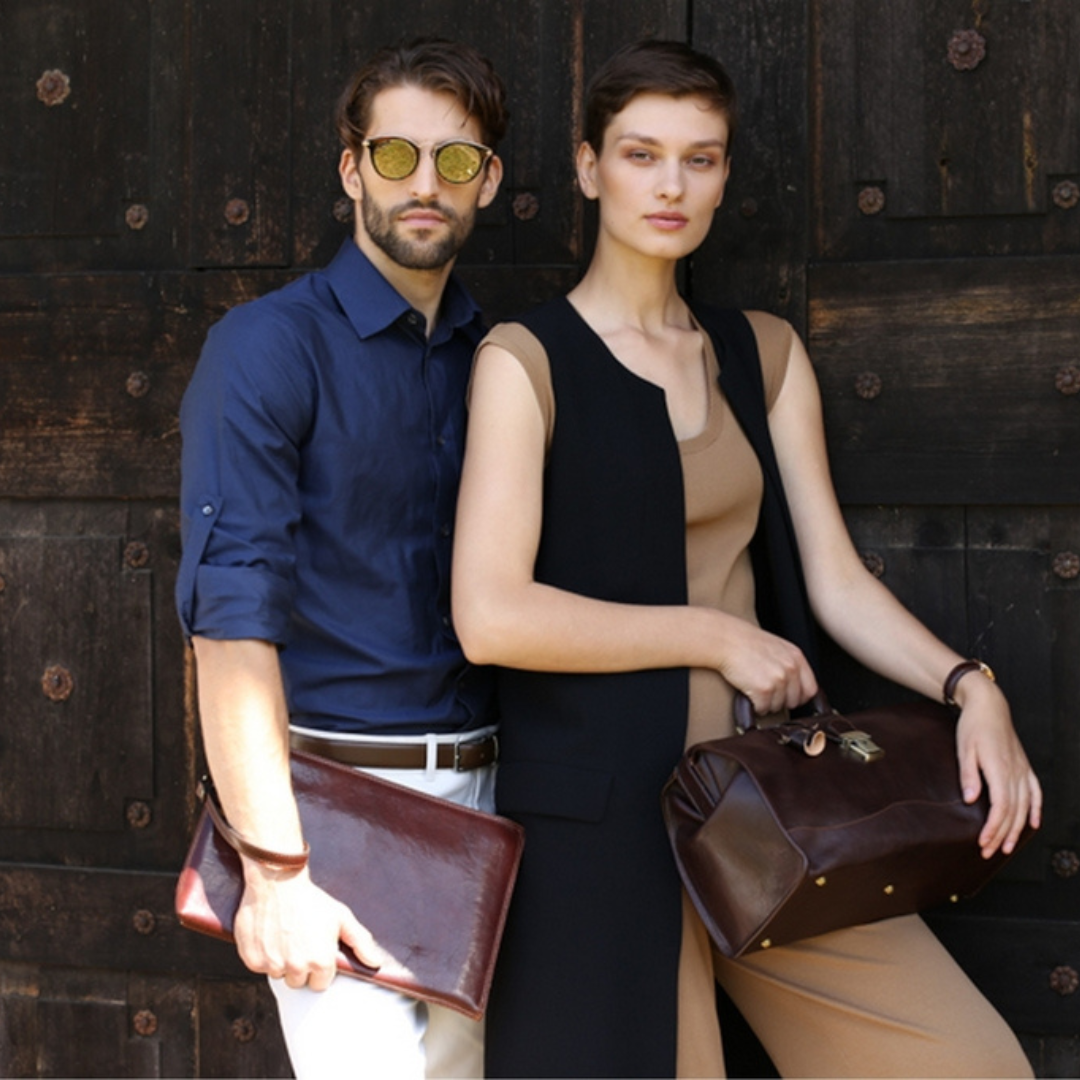 Most of our bags and accessories are unisex. We find it edgy, cool and empowering for a women to carry a briefcase even a really masculine looking one, this is how you know she is a real boss. We wanted to utilize both male and female models to show how leather portfolios, classic doctor bags, etc. can be used by both without being a caricature. The tale is as old as time: after a busy work day (of course they look so professional!), a couple meet for a romantic getaway.