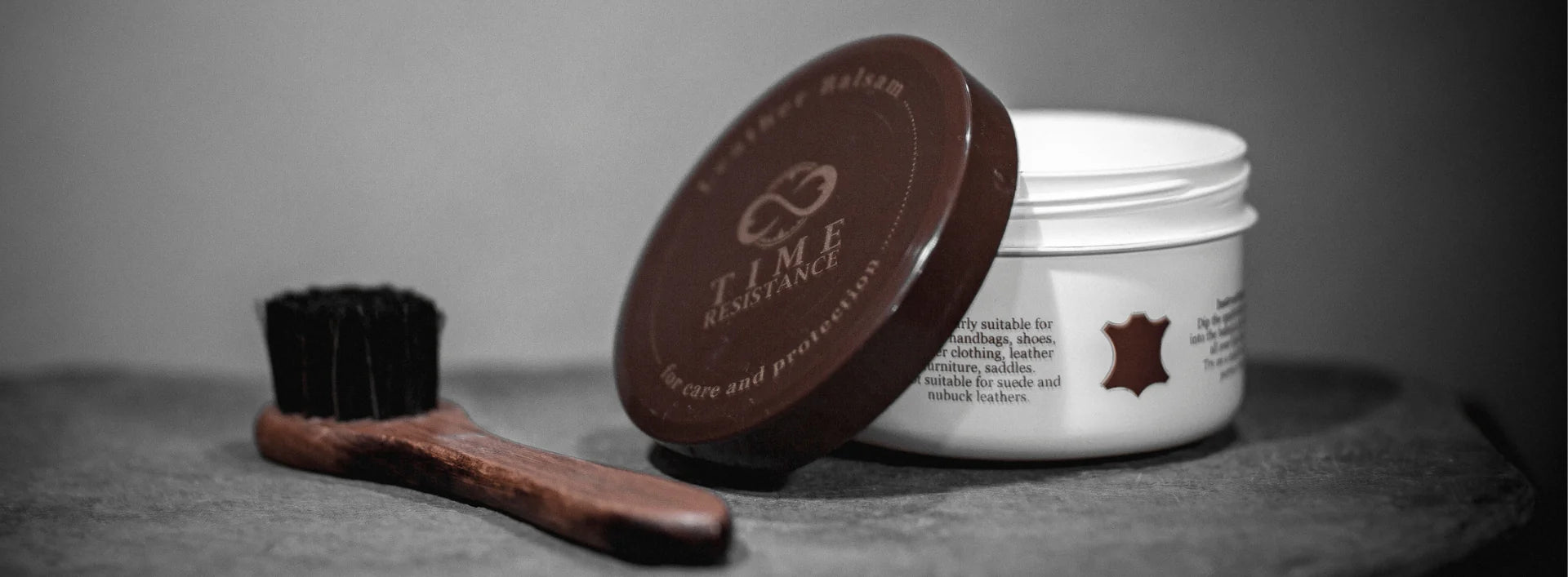 When you purchase a Time Resistance bag, you have the option of also purchasing our leather balsam. This specially formulated balsam is designed to care for and maintain the beauty of your leather, ensuring it remains a cherished companion for years to come.