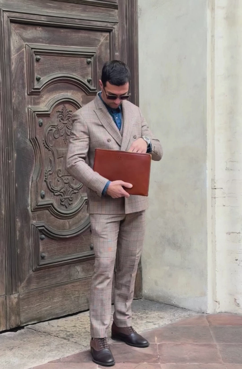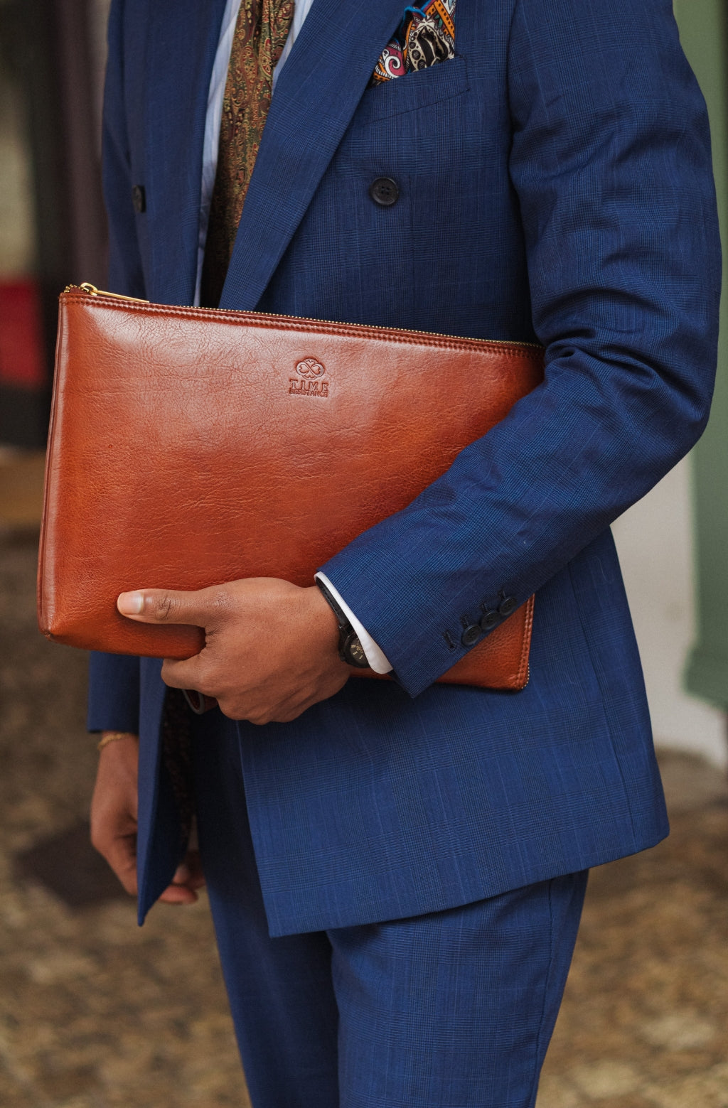 A manly Italian leather clutch purse. Minimalist design, perfect for those who like simplicity without renouncing elegance. It will accommodate all of your daily essentials including smartphone, small tablet, etc. and look all business with a touch of sartorial elegance.