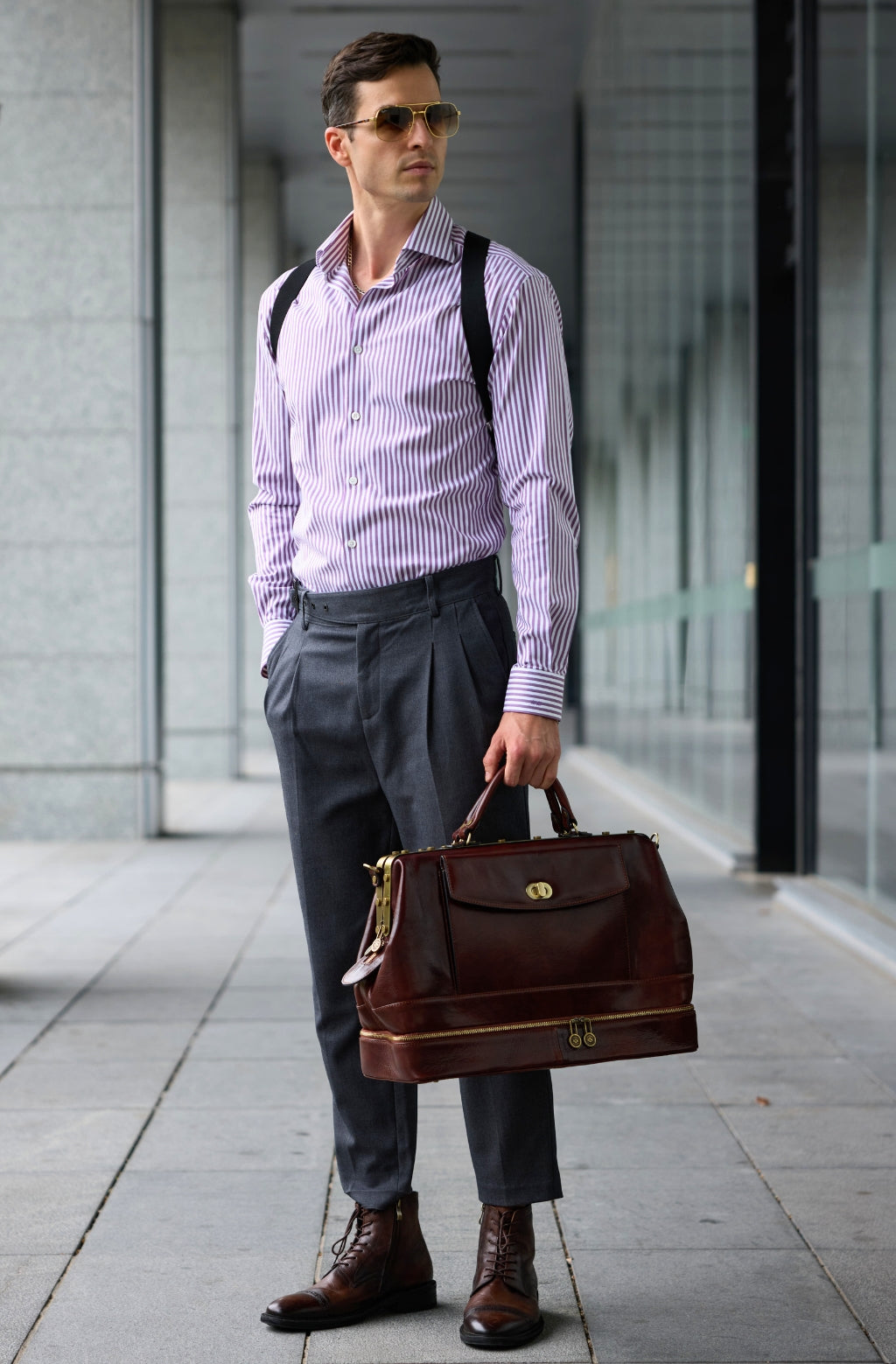 I have always loved the doctor bag design so when I saw this model with great leather quality and stitching, it didn't require much hesitation to buy! It is slightly heavy but expected of a full leather piece, with capacity for my work documents and tablet. Overall, a practical design with class. Too happy to own one.