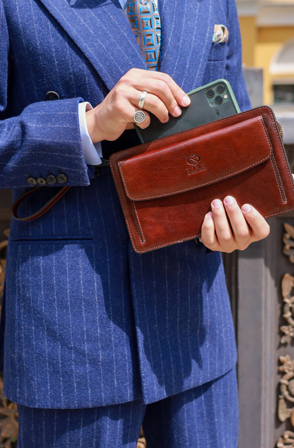A classic and smart design leather clutch is what we always wanted to add to our collection. Pair it with a dressy look or jeans – it will perfectly compliment both looks. A full grain Italian leather clutch Decameron is what it takes to keep your essentials organized. A premium quality leather clutch has two compartments, a zip pocket inside and outside and a front pocket with a magnetic closure which is more than enough to accommodate your wallet, smartphone, keys, etc. It has a detachable wrist strap for easy carry – perfect for a day on the go.