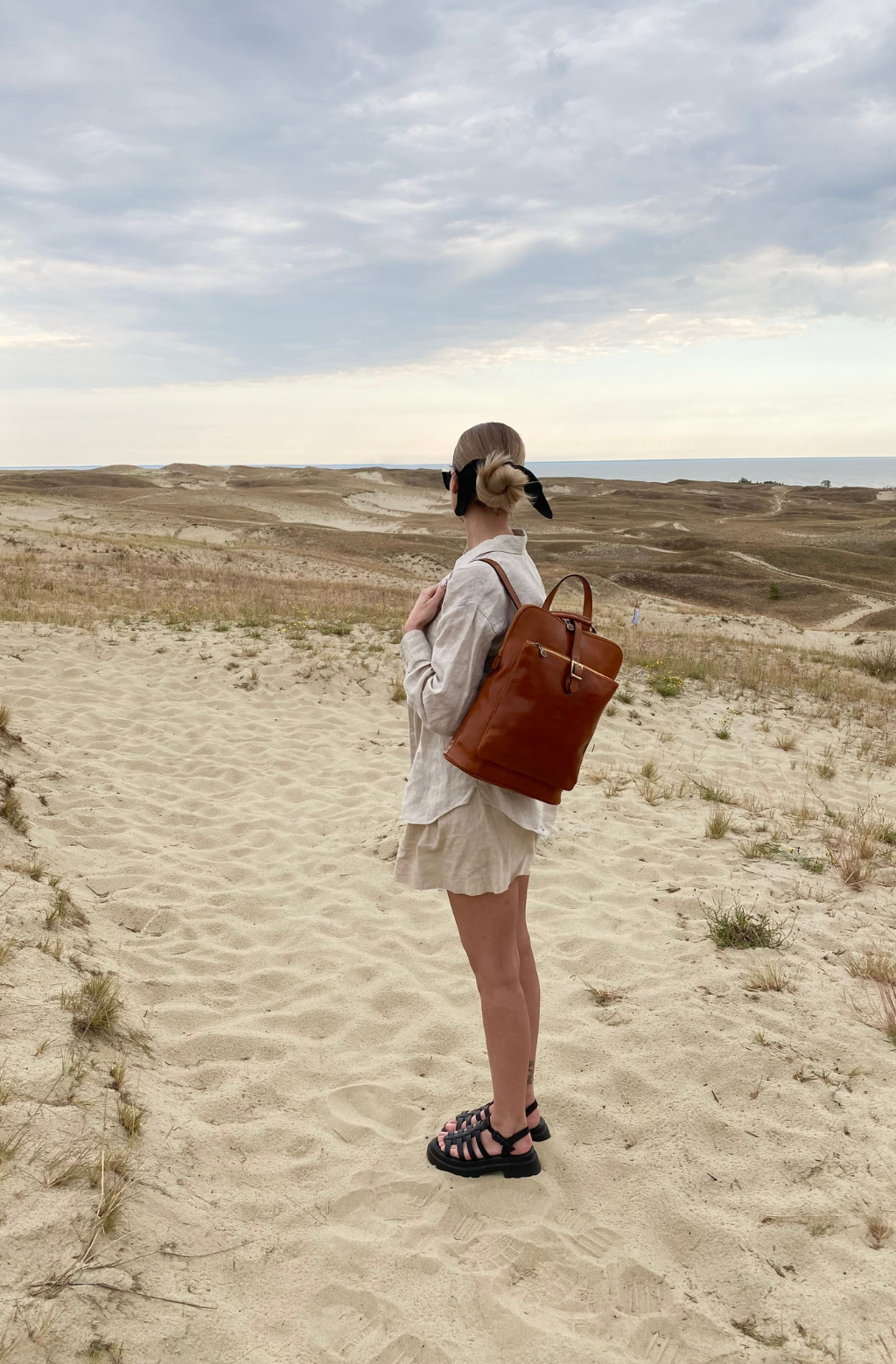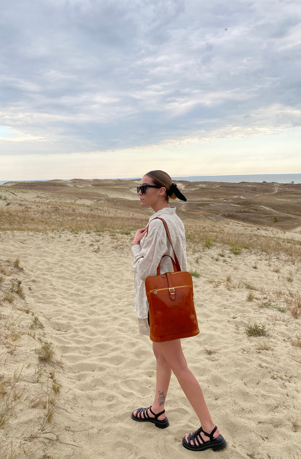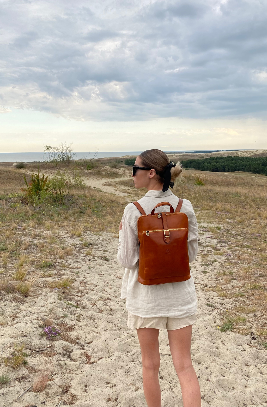 A full-grain leather backpack Emma is a modern twist on a classic Italian design backpack. This premium quality elegant backpack can be converted into a shoulder bag in seconds. Made in Italy Emma backpack has everything one might need in a busy city life - multiple compartments and pockets wrapped up in a clean and minimal design. Only materials of premium quality have been used for our hand-made convertible backpack-shoulder bag. Sophisticated and elegant leather backpack Emma instantly elevates business attire as well as a more casual wear.