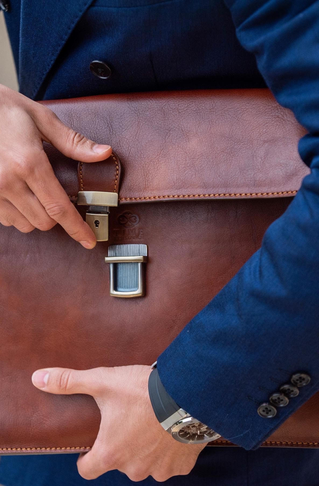 A classic and sleek design Italian leather document case is an unpretentious partner in crime. Although looking compact the leather workbag fits a laptop, all the paper pads you need, and more. A reliable lock with a working key ensures the safety of your precious belongings. Carry it under your arm, or add an adjustable shoulder strap for a hands-free experience.