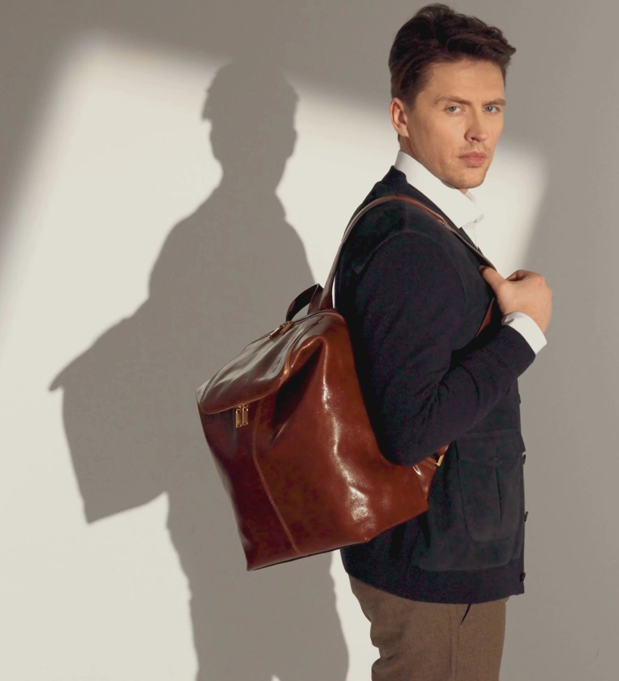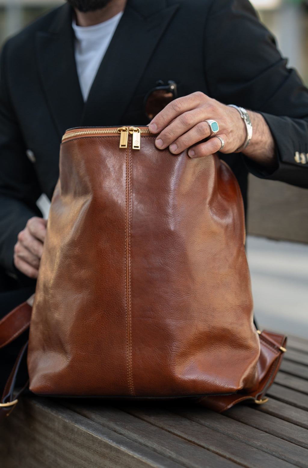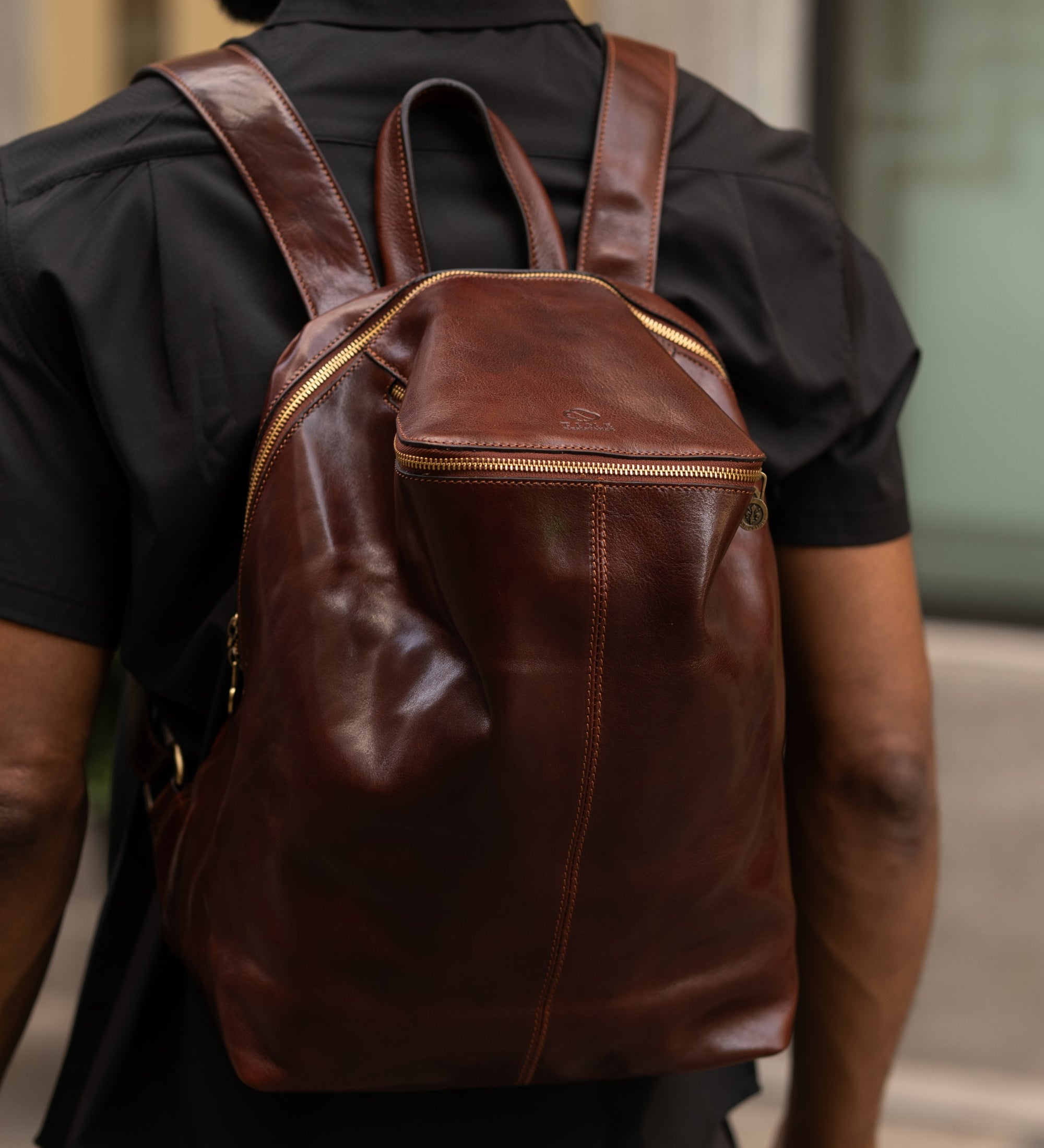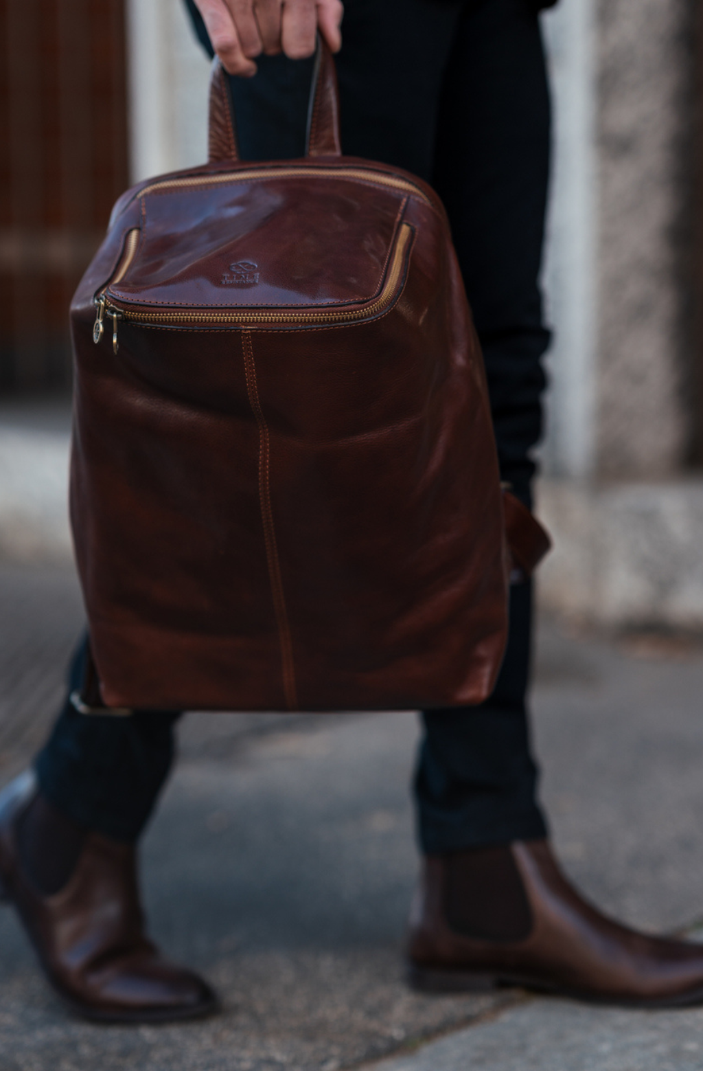 A unique Origami inspired Italian leather backpack A Bend in the River represents our vision in design and function: it is clean yet intricate. Born in the heart of Italy this full-grain leather beauty is a worthy contender in the backpack world. More function, more quality, more travel!