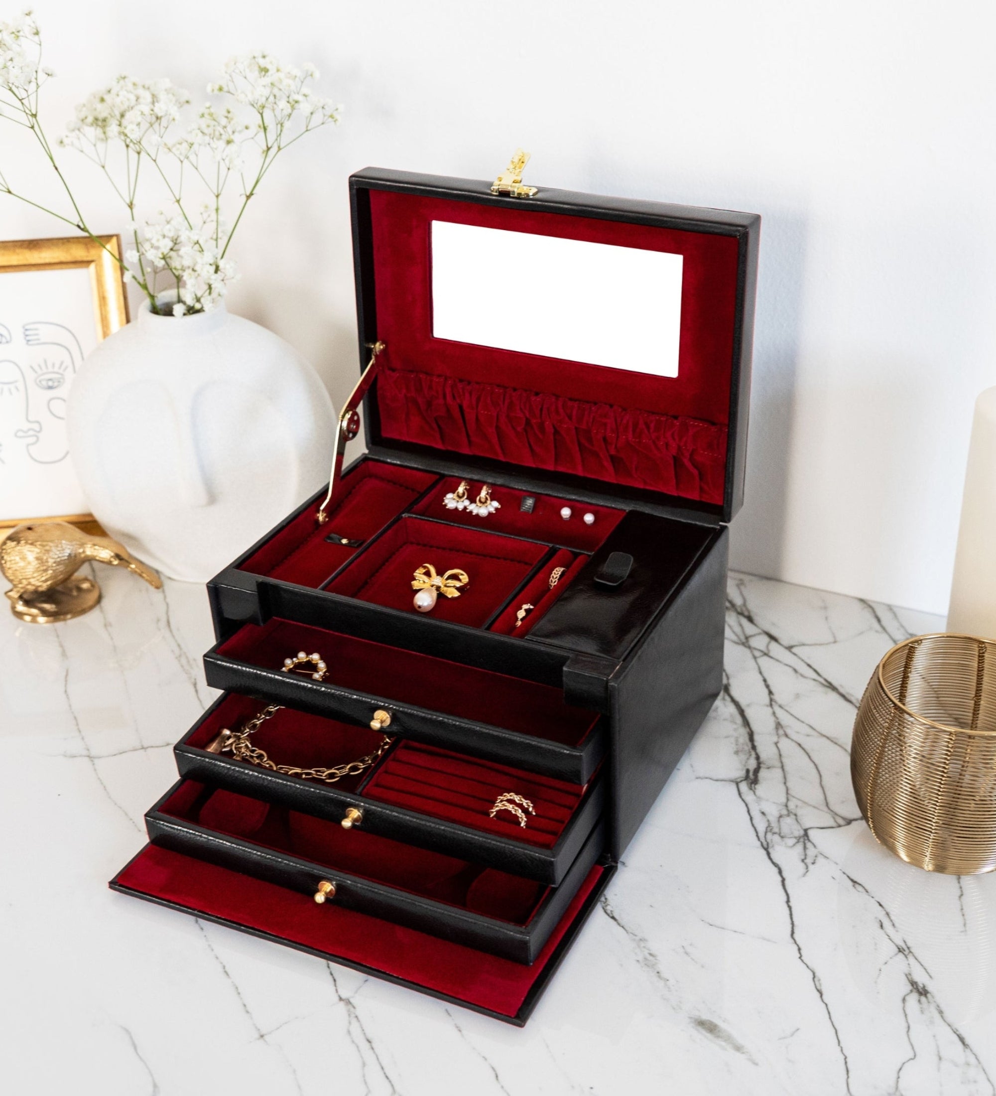 It's nice, the quality is good (with the exeption of the lock, hence only four stars). Lots of space for jewels. I haven't actually traveled with it yet, so it is a bit early to tell how well things stay in place but at least I have one place to store it all at home now.