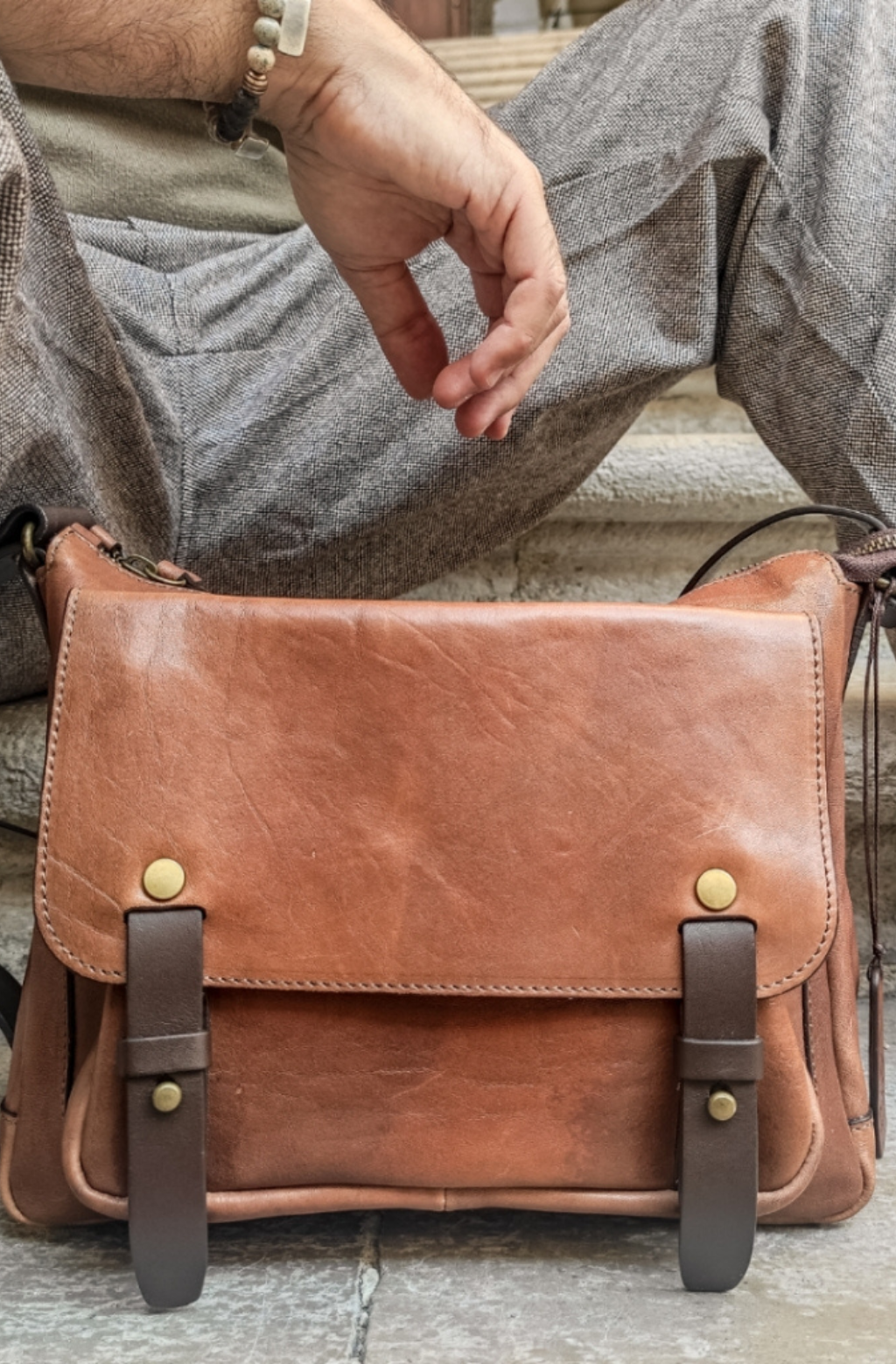 Time Resistance bags are crafted from premium full-grain, hand-dyed, vegetable-tanned Italian cowhide, known as Vachetta leather, which develops a beautiful patina.