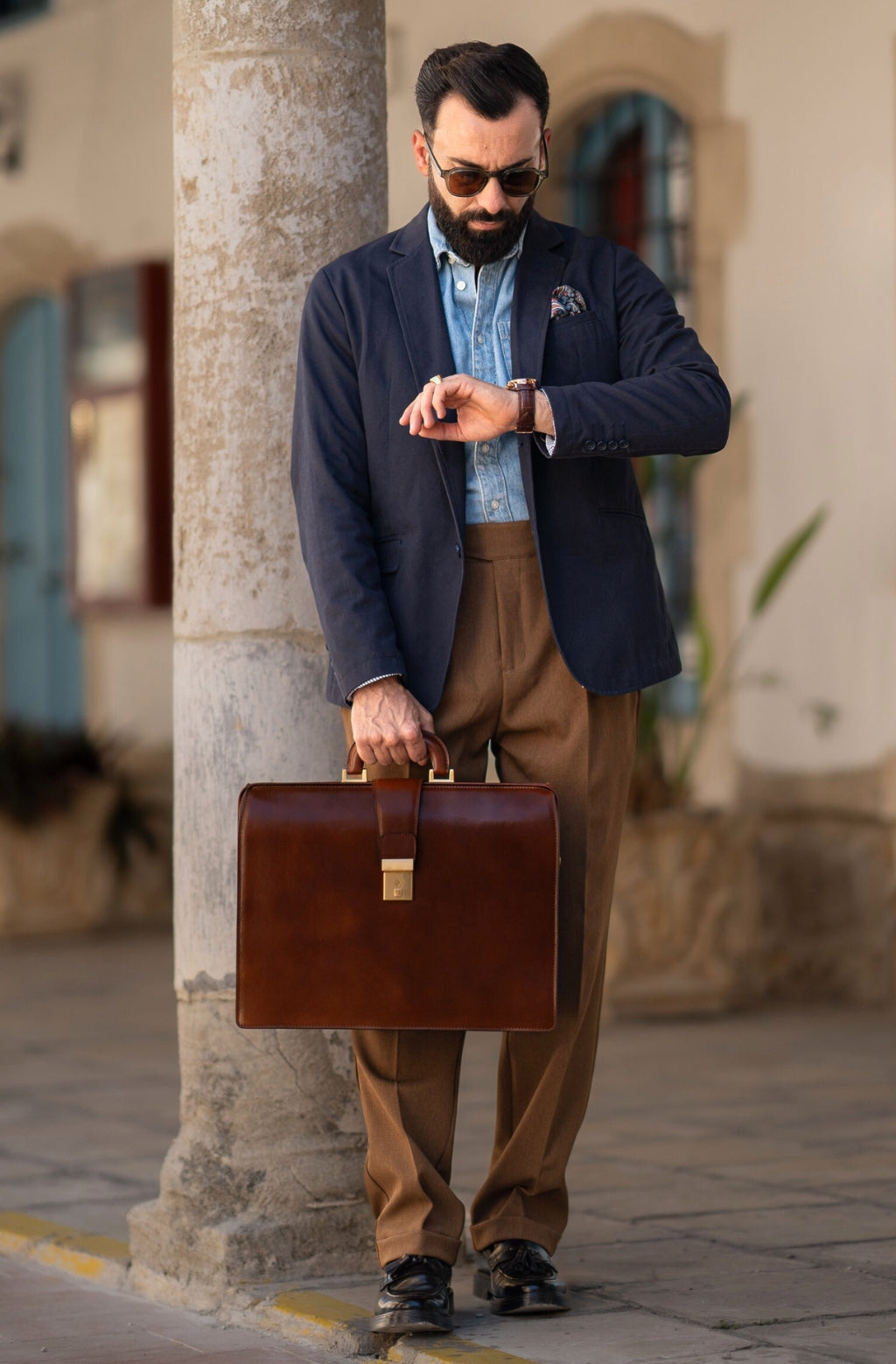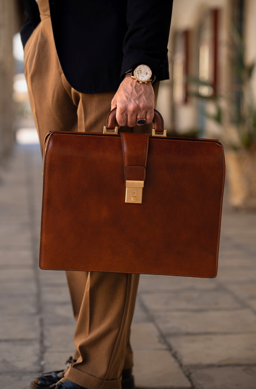 Time Resistance bags are crafted from premium full-grain, hand-dyed, vegetable-tanned Italian cowhide, known as Vachetta leather, which develops a beautiful patina.