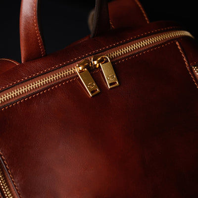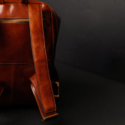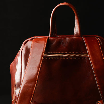 A unique Origami inspired Italian leather backpack A Bend in the River represents our vision in design and function: it is clean yet intricate. Born in the heart of Italy this full-grain leather beauty is a worthy contender in the backpack world. More function, more quality, more travel!