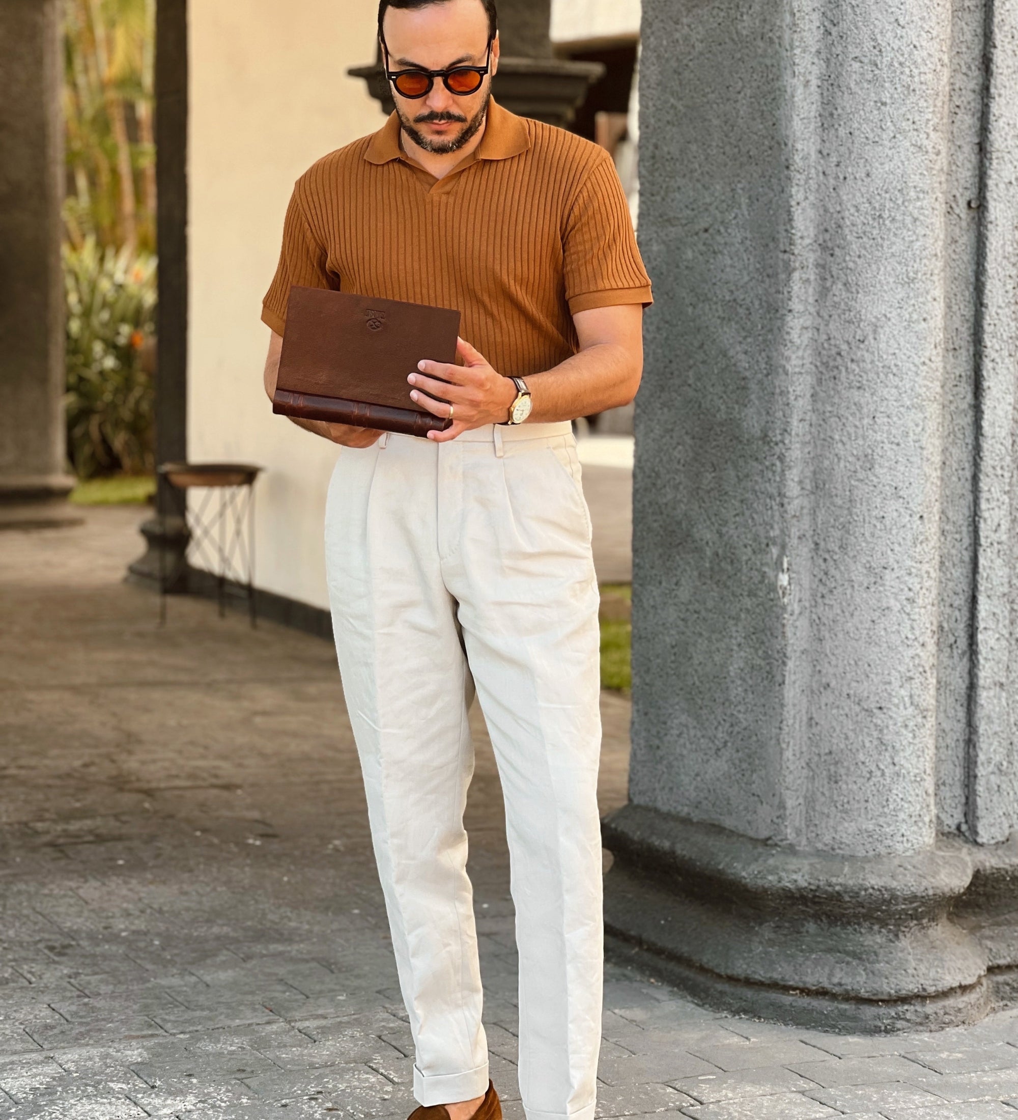 A wooden cigar box upholstered in premium Italian leather to keep a collection of fine smokes. Amazing craftsmanship, attention to detail and love of vintage - this is what Howards End cigar case is all about. Classy, elegant and subtle this handmade leather cigar box is also functional: keep your humidor inside in a hidden compartment and store your smokes safely with an extra strong magnetic closure.