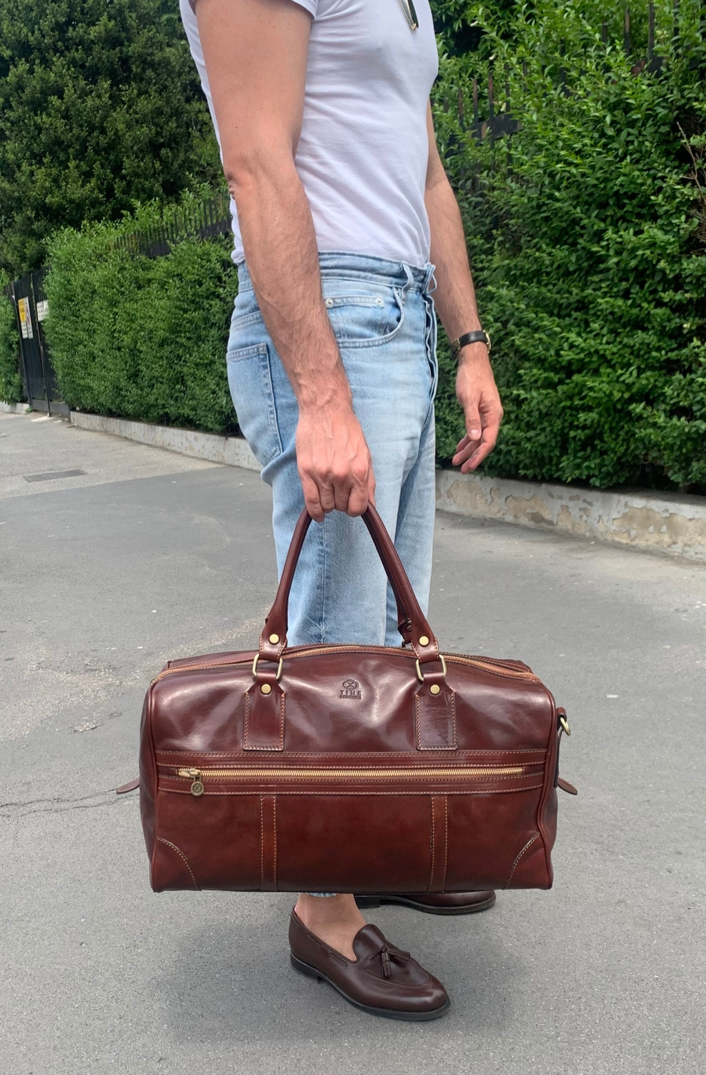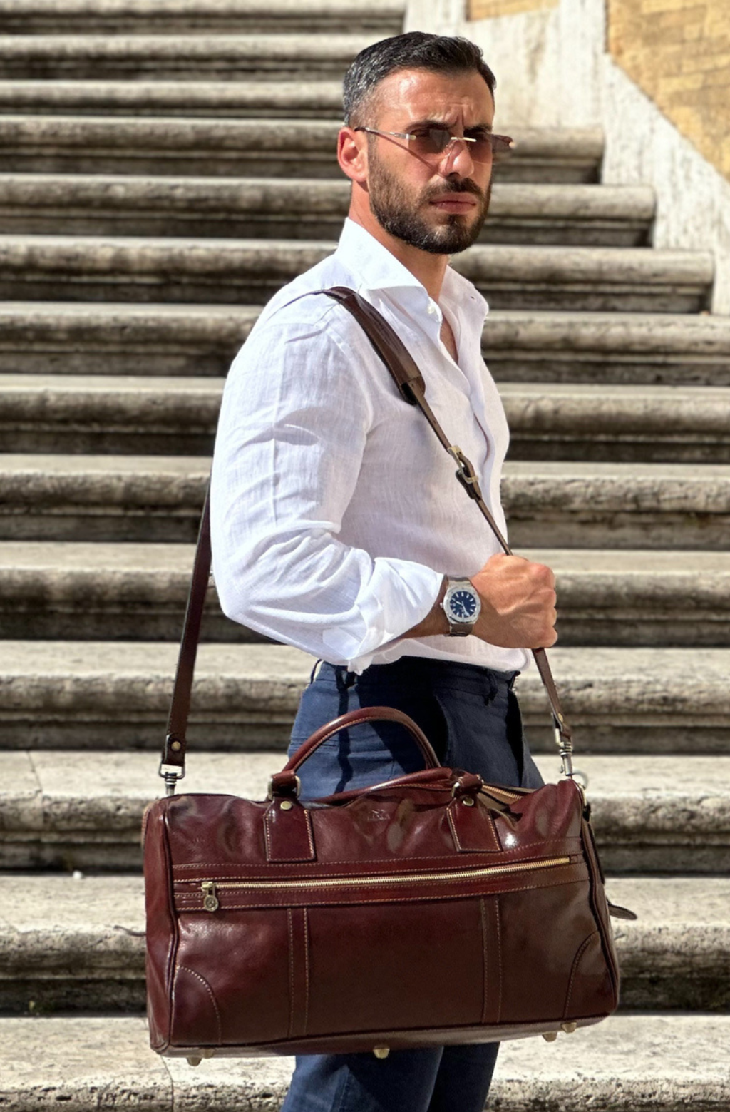 In the tapestry of travel, "To the Lighthouse" emerges as a steadfast companion, a silent witness to the adventures that lie ahead. Crafted with meticulous care, its sturdy exterior not only hints at resilience but also beckons with the promise of journeys yet to unfold. Adorned with two elegant vertical leather straps, and reinforcements in every corner, it blends form with function, adding a touch of timeless elegance to its design while providing additional support for your ventures. Within its spacious confines, memories find sanctuary, nestled amidst the well-worn interior. With every step, it becomes more than just a bag; it transforms into a trusted confidant, a guardian of cherished moments. Let "To the Lighthouse" be your faithful companion as you navigate the intricate pathways of travel, an emblem of resilience amidst the ever-changing landscapes of life's grand adventure.