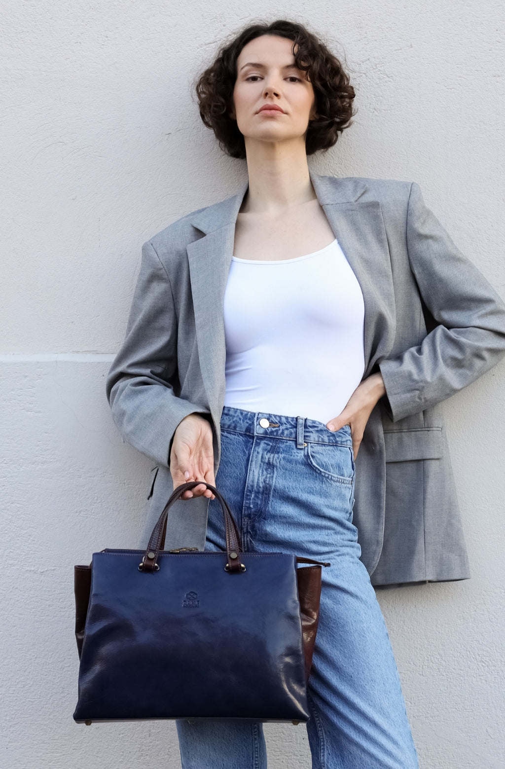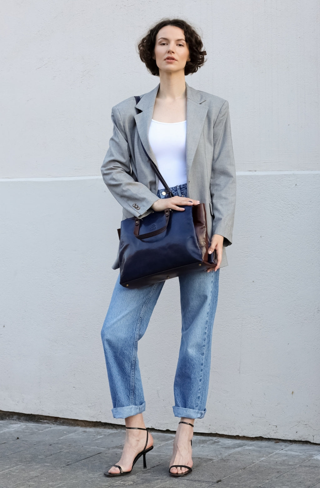 An elegant full-grain leather tote bag adds character and style to every self-confident woman! Its universal look allows you to use the tote bag for various purposes. One may take the bag to the work, shopping, meeting, or walk and feel comfortable with it in any condition!