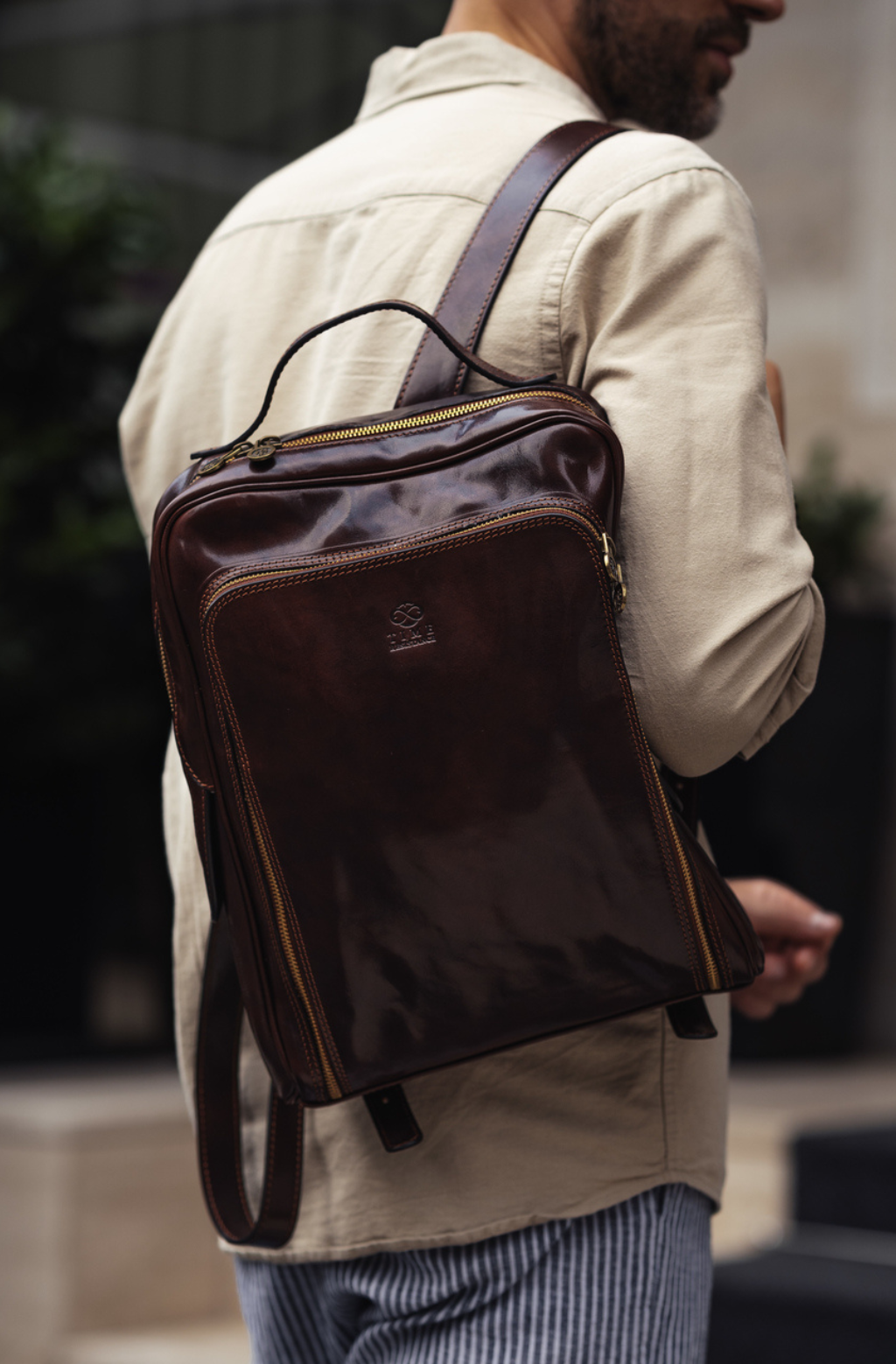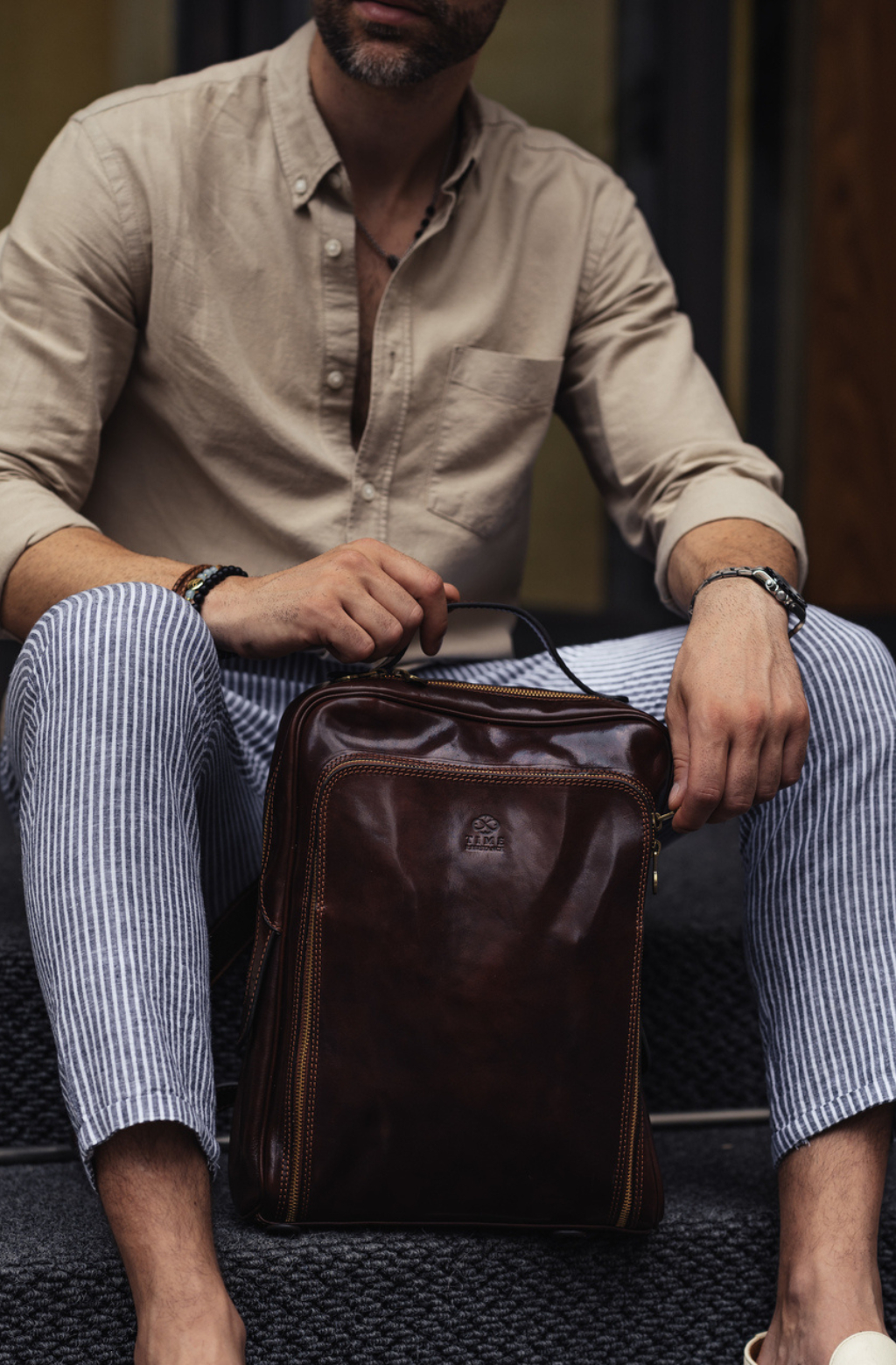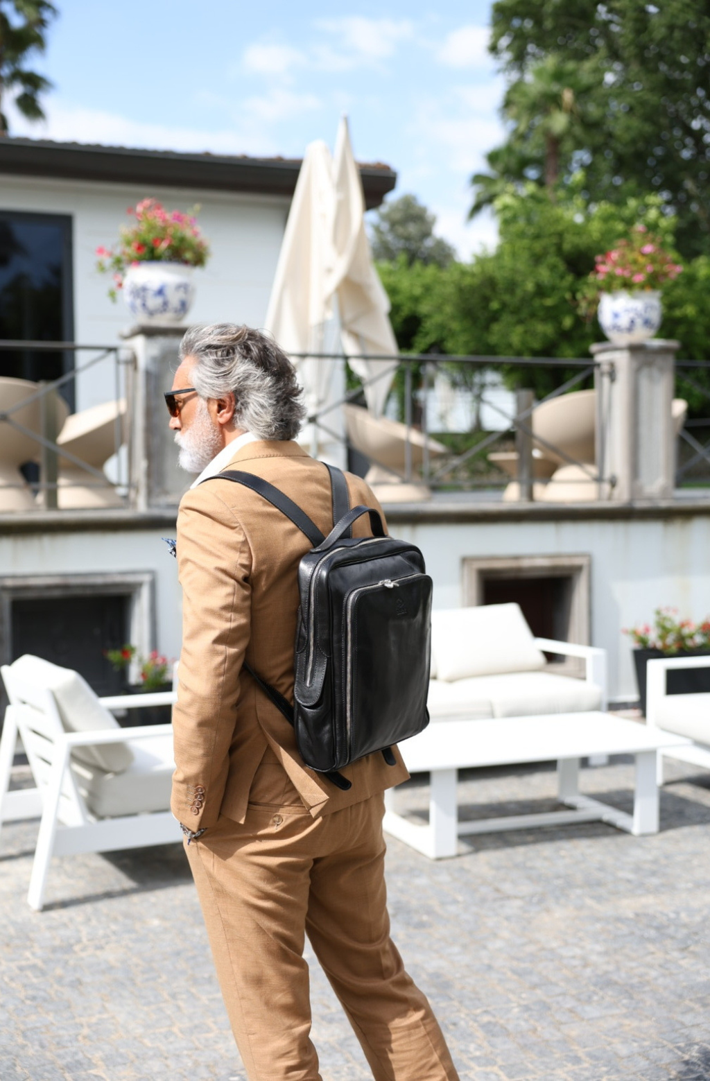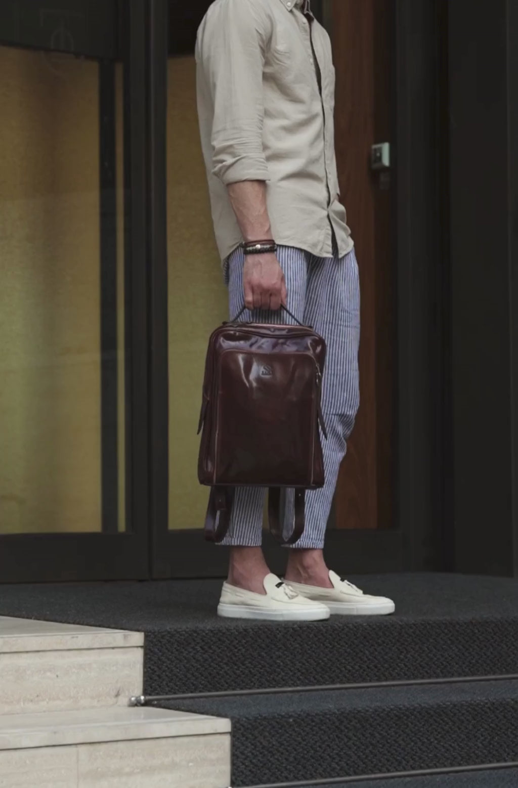 A full-grain leather backpack reminiscent of the 1970s take on futurism. Vintage details merge with clean minimal shapes. For a dreamer, a thinker, an eternal wanderer. For those who want to stand out silently.