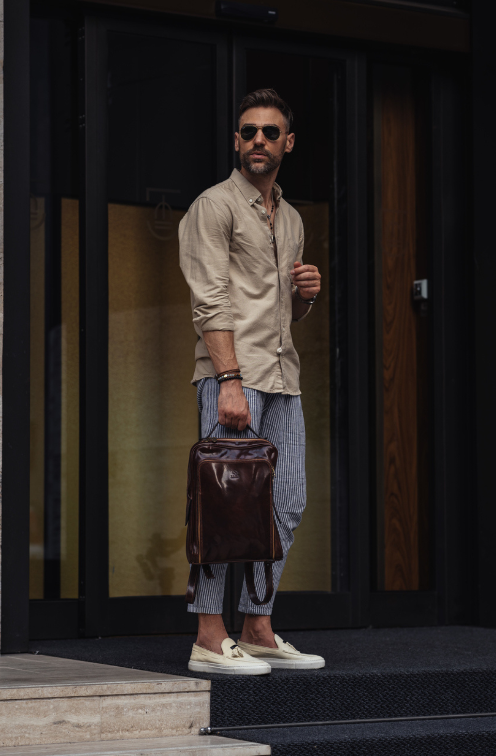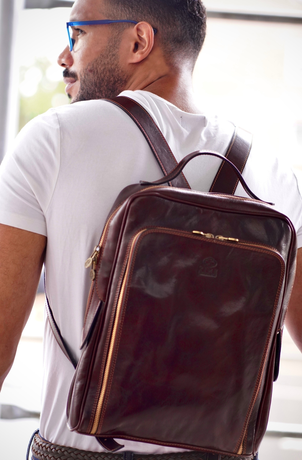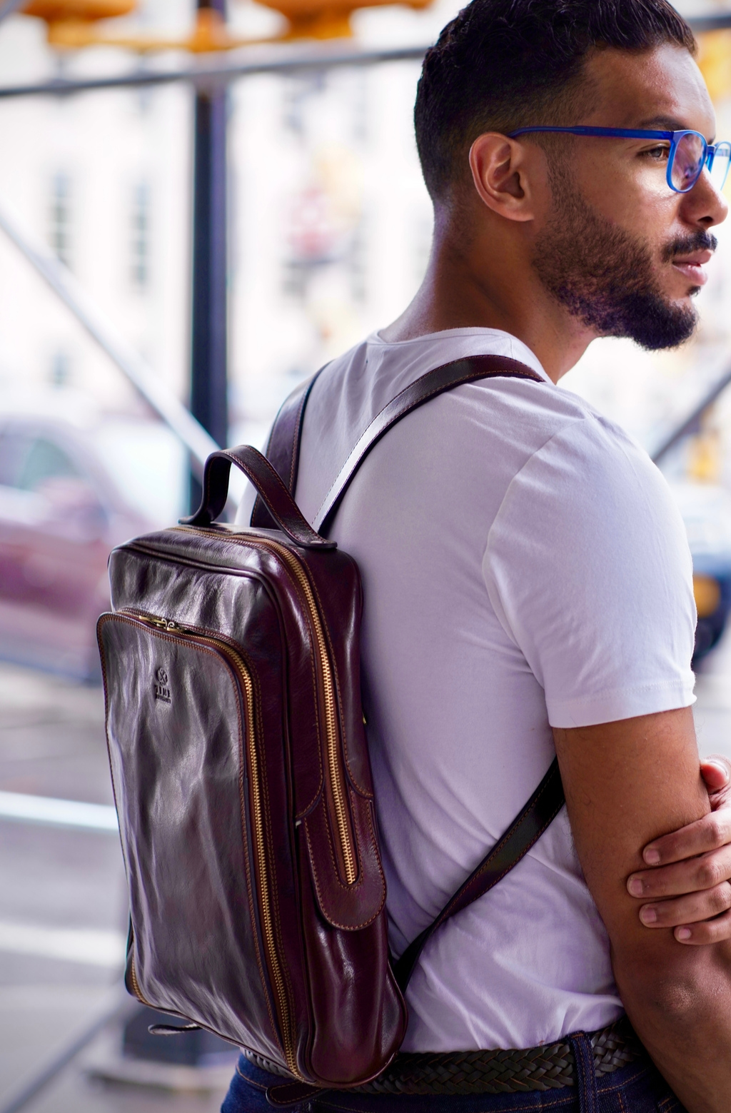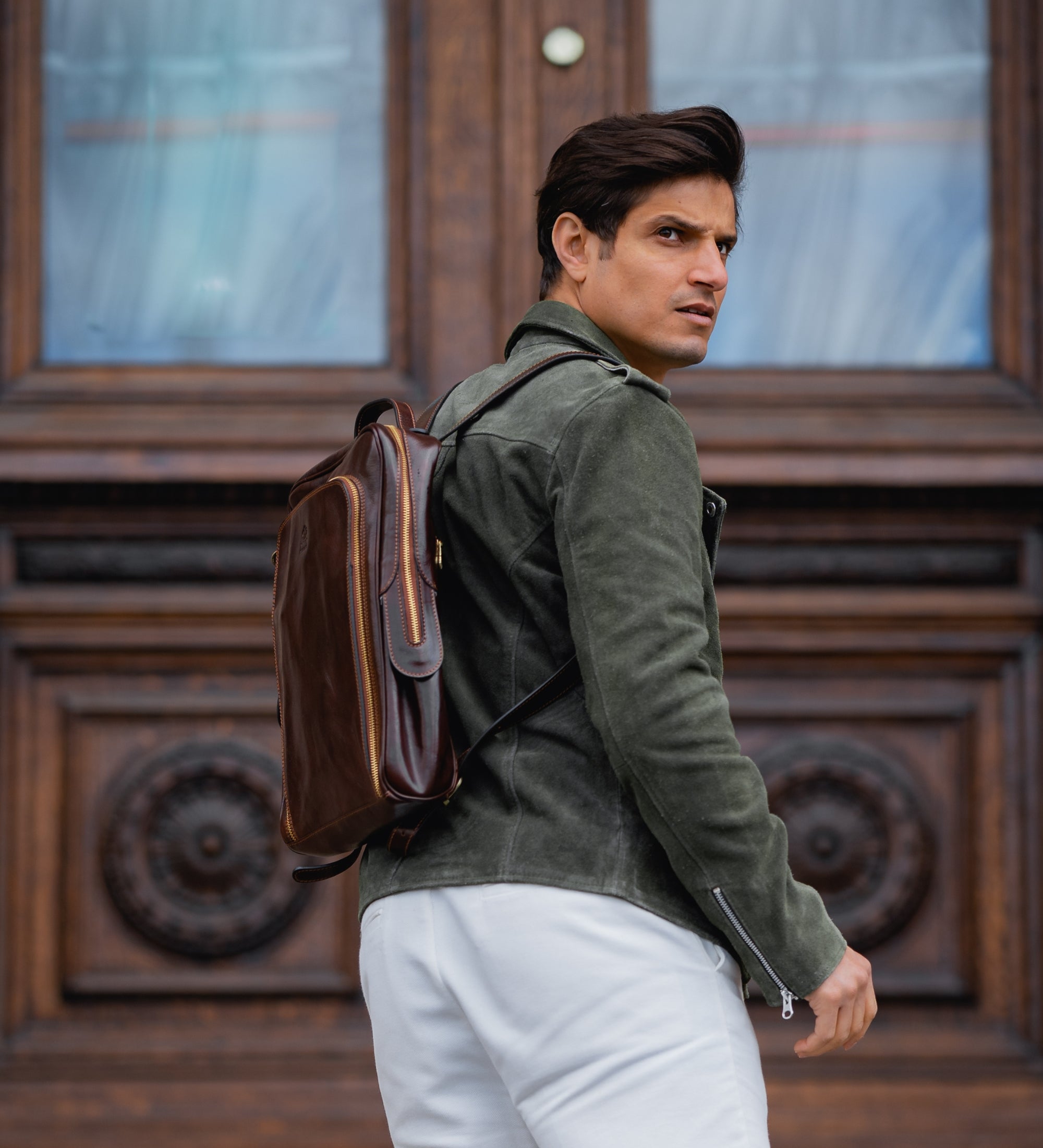A full-grain leather backpack reminiscent of the 1970s take on futurism. Vintage details merge with clean minimal shapes. For a dreamer, a thinker, an eternal wanderer. For those who want to stand out silently.