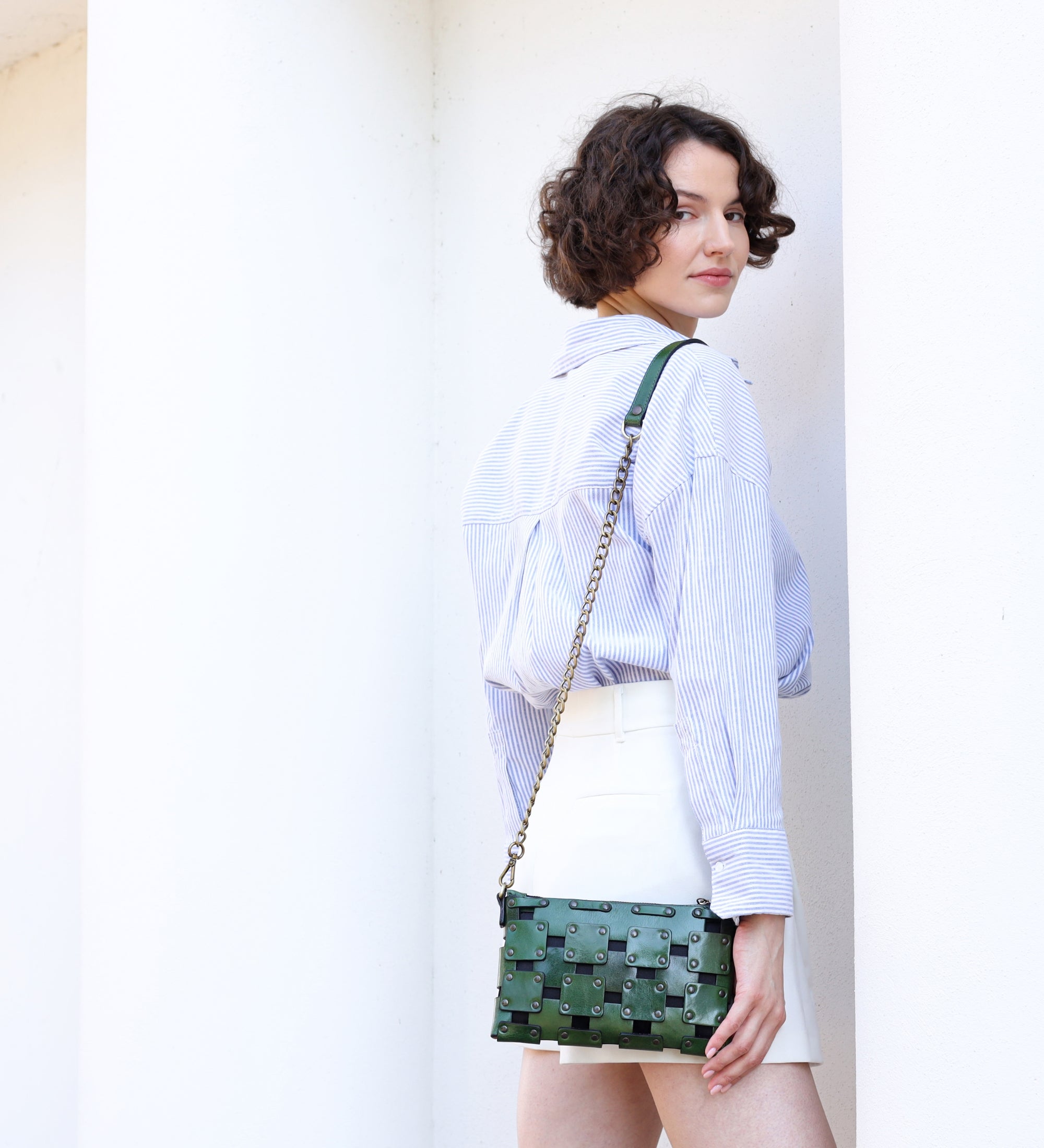 Unique design leather clutch for a charismatic woman. This edgy style leather wrist bag is spacious enough for all the essentials including your smartphone, keys and some cash. Use it on normal occasions with casual or formal clothing. The clutch is also perfect for carrying it as a crossbody bag or shoulder bag. Complete with a detachable wrist strap.